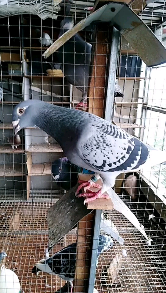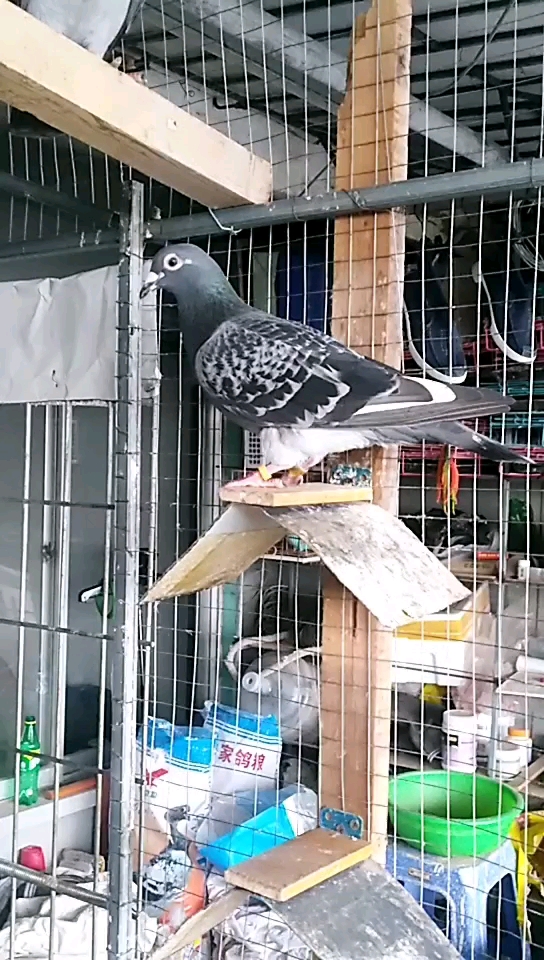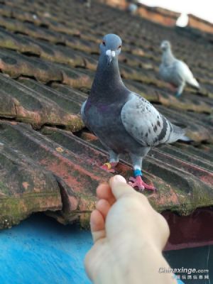 马利鸽友送来一只鸽子,不爱飞,老是落,他怕影响他的大群家飞质量,送给我,进地网下面捡粮食免得浪费鸽粮。等秋赛完了再还给他。
