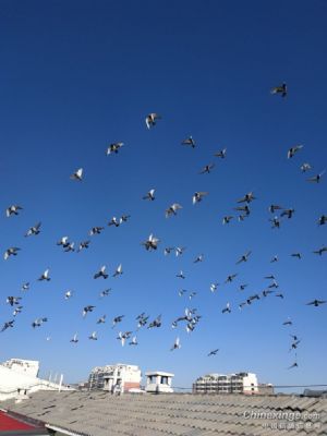 早晨放鸽出去飞,一不小心就把两羽小鸽带出去,还好两羽小鸽都先回来了。