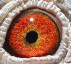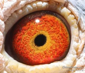 鸽眼是灵魂的窗口,有人说看鸽眼没用,其实通过鸽眼可以判断鸽子是否是优秀的。瞳孔收缩快,眼球抖动,瞳孔小(比较而言),眼砂要干、老、亮,有的挂油。底砂亮(光亮)厚(层次),面砂拔紧(贴紧)底砂,颜色不同但是融为一体。这样的鸽子不敢说一定能获奖,但可以肯定成绩绝对不会差。
