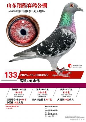 第四关棚冠,0178816目前4关综合分速4100,师傅昨天问这只鸽子表现怎么样,要知道这只鸽子妈妈是从朋友手里花1W抢过来的,这路鸽子在公棚打疯了,我说前面表现不温不火,第四关进56名,师傅让把鸽子送给他看看,抓到手里赞不绝口,说我这样不懂调理鸽子的,鸽子能飞这样好,已经很不容易了。心里就不想在上第五关了,师傅说还是明天上笼,反正父母鸽都在。今天中午集鸽,希望明天能有完美的表现,结束秋赛。也希望特比05也能飞出正常表现,成功进5关前50名。