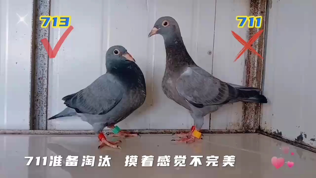 【石板鸽的去与留】今年超霸109配不同的两羽雄,分别出了3羽石板鸽,最早配超霸194属于近亲再近亲,出的一羽雌石板摸着欠妥被淘汰了。 后来配盖比957第一窝出了两瓦灰,感觉还行。往后两窝每窝均出一只石板,第二窝中的这只711是雌,又感觉不是很完美,现准备要淘汰。 唯有第三窝出的这只713像雄,暂时摸着还不错,也计划暂时先留着。另在此说明一点;这一雌双雄的种鸽祖辈中都有石板羽色。 应前面帖中评论的一位鸽友要求,现将此3羽鸽子的视频发出来共谈讨。