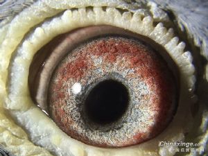 不看鸽眼的人,一般养不出好鸽子的。个人认为颗粒感强、眼结构好、宽眼痣圈,有阿尔撒,色素深,瞳孔最好鸭蛋状,露底好,松透性好的鸽眼比较吃天气,复杂性的鸽眼,色素深,遗传较稳定,打比赛的话可以主打短距离。 例如图3鸽眼,面砂有层次感,色素深,遗传很稳定,有较宽的眼痣圈,血影位置也很好,说明鸽子比较耐天气,适应短中长赛距速度不会很慢,遇到恶劣天气比赛,发挥尤其明显。