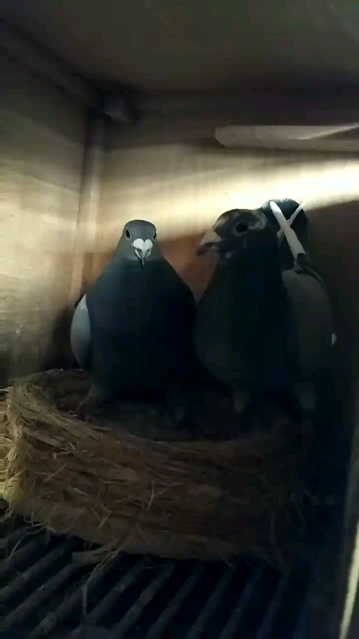 这对种鸽小鸽子是1月21日放假那一天出壳的,到今天己第17天了,这对种鸽新配对第一窝小鸽,种鸽都是黄眼都做育出很优秀的种赛鸽,预计这对种鸽出三窝鸽子,完了后还要从新组对在配一轮近亲回血配对,今年重点放在育种上,有时间就放放比赛,没有时间只有放弃。