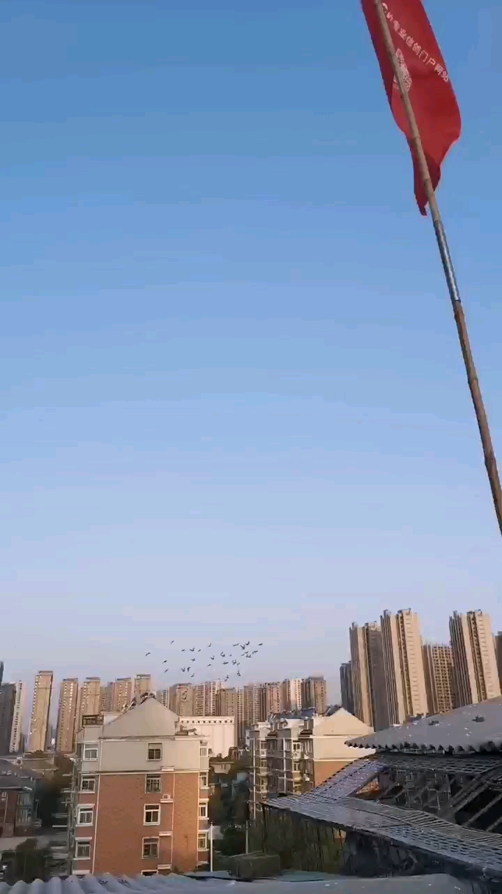 早晨风挺大先放成鸽出去飞,等成鸽飞差不多再放幼鸽出去,前些年老幼鸽一起放,尤其是刚出笼不久的幼鸽,跟大群飞的太远时间又长,因为体力不支就没回来,每年都损失不小,这些年比较注意这方面情况,分开放幼鸽损失就小一些。