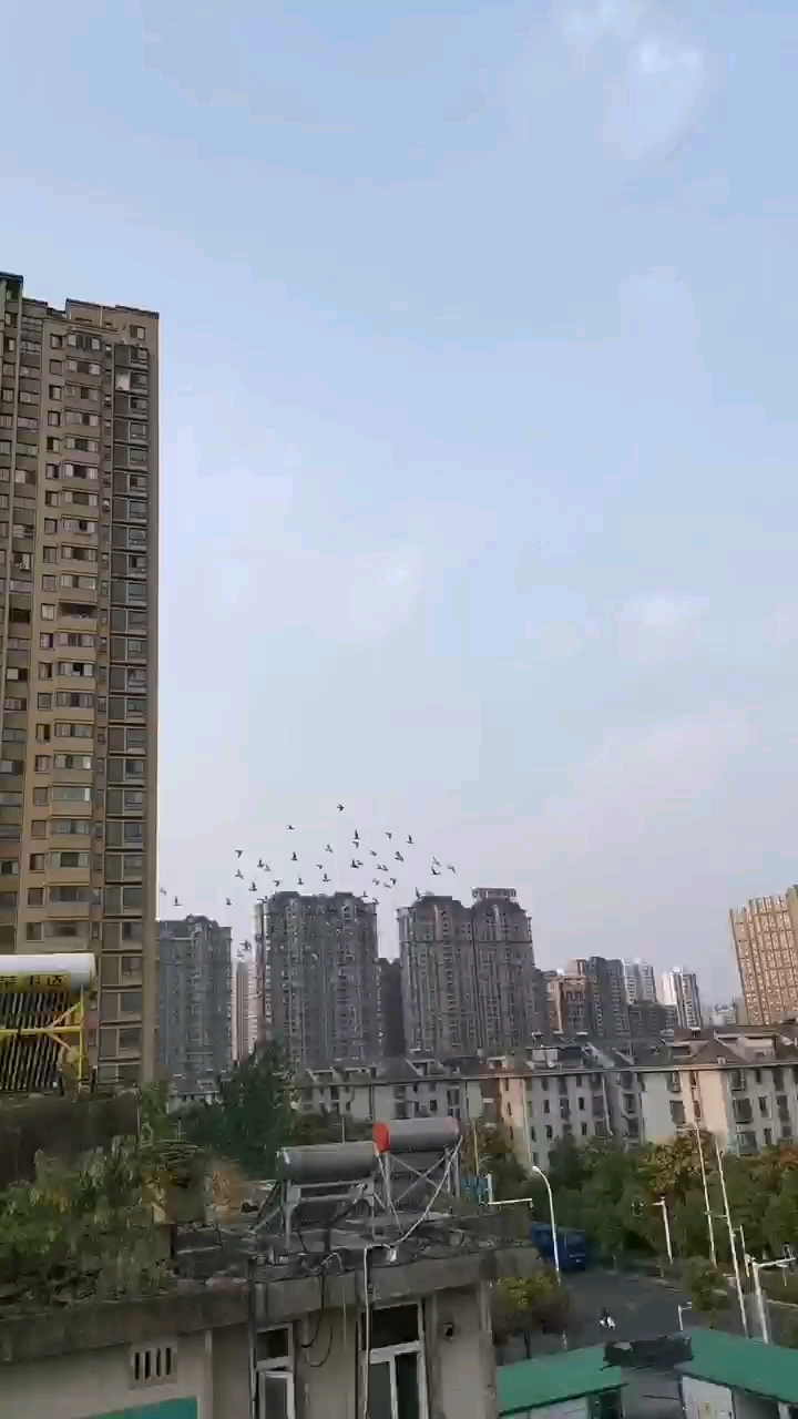 天不好黑的就早一些,傍晚下班看天还有点亮度,就放鸽子出去飞一会,现在这天一天天短起来,大强度家飞也进行差不多了,有时间还是要短程训练,没有时间直接跟鸽会上大笼,咱玩鸽子硬件比不过职业大戸,所以就要在软件上下功夫,比赛好天气当别人的鸽子飞的时侯,你的鸽子也要飞,一但天气不好时别人的鸽子不飞了,你的鸽子还是要飞,这才是真正是玩鸽子的。
