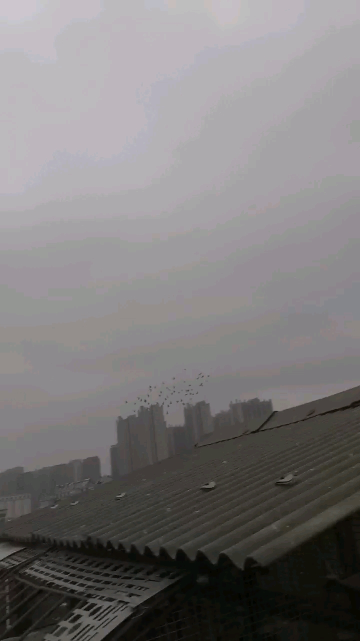 鸽友们大家晚上好!今天休息本来准备去短程训放的,因为雾霾有些严重就没有放成,这是傍晚拍的家飞视频,持续飞行1小时样子,家飞结束后又开始下雨了,这天气真是吃不透。