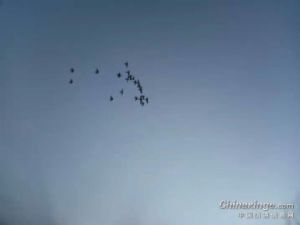 两只菜鸟和它们的母亲!PS:比昨天飞的整齐,但没有昨天飞的时间久!