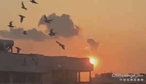 朝晖将天空染成红色,太阳的光芒披上了华丽的外衣,散发着和平与宁静,鸽子在家飞,他们静静地聆听着天空中唤醒的大地之声