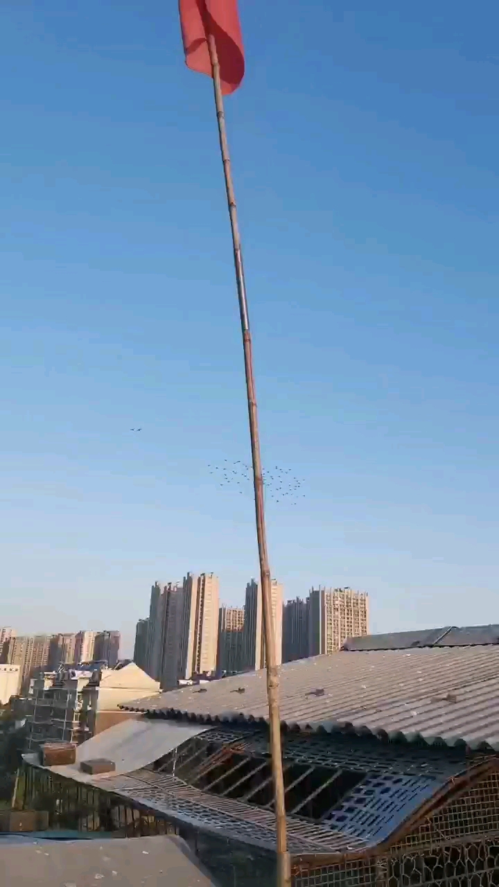 鸽友们中午好!早晨上班忙到现在,才有时间来鸽友圈,早晨家飞视频,训练旗又加高一节,告诉小鸽子们大运动量开起,早晨凉爽鸽子连续家飞近50分钟,鸽子都不想落有点没飞够的感觉,最近倒毛还是有些严重,该控制还是要控制一下,慢慢适应了会更好一些。