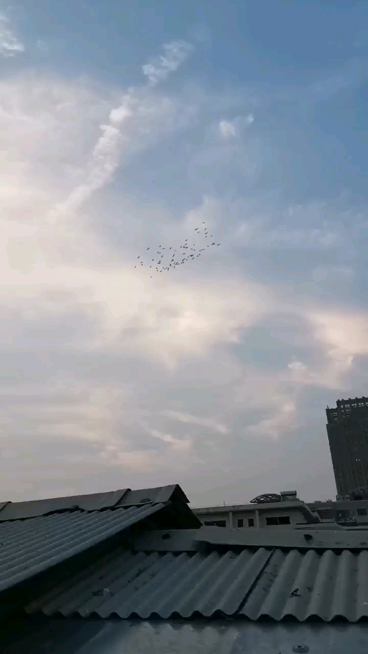 傍晚下班放鸽子飞,开始没有干扰鸽子队形整齐,飞了近20多分钟样子时候,老王和另几家也在放鸽子飞,小区上空几百羽鸽子飞翔,就像个小公棚一样,快到比赛季了,家家都在训练鸽子,晚上还是老规矩最后一次座笼训练,明天准备逮二十几羽幼鸽先起动,第一站北线10公里开始。