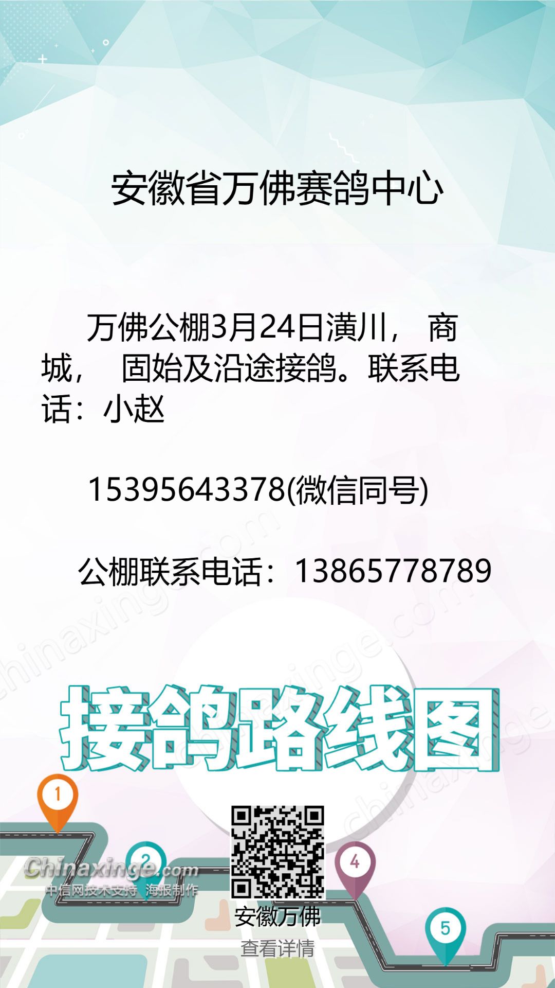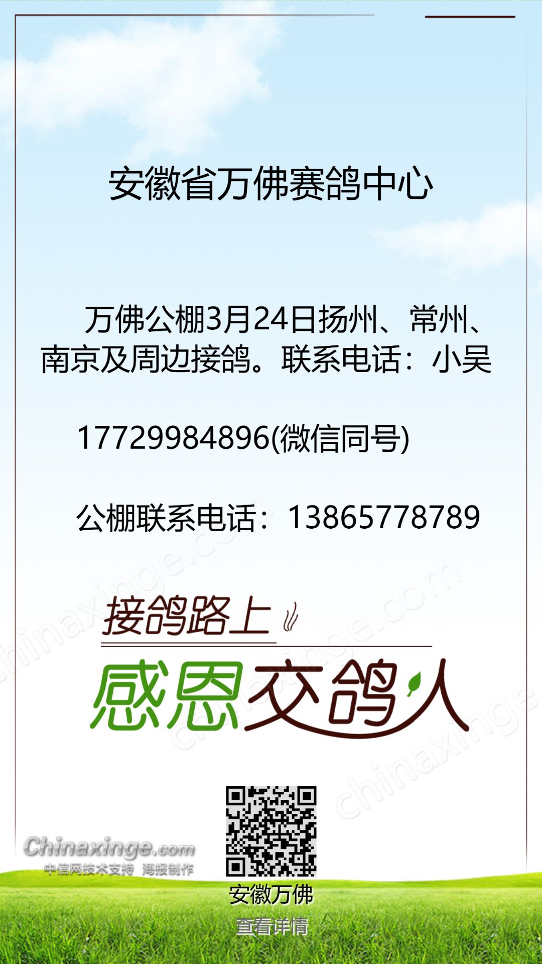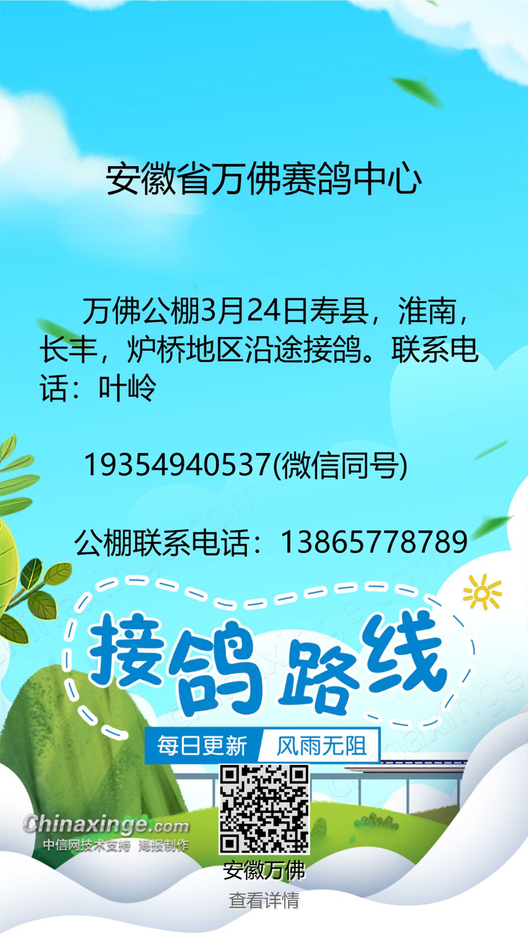 万佛赛鸽中心3月24日接鸽公告