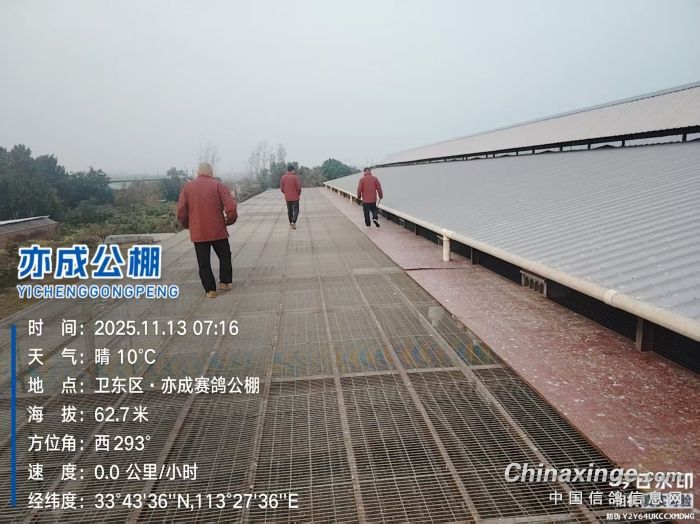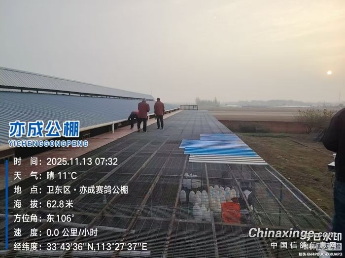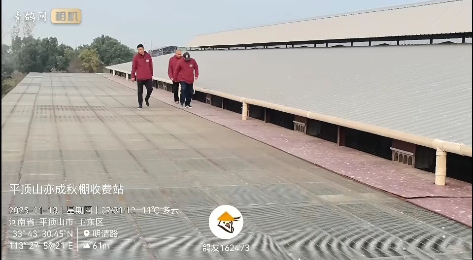 河南平顶山亦成秋棚75公里收费站(鸽子归巢前裁判查棚检测进门洞踏板)