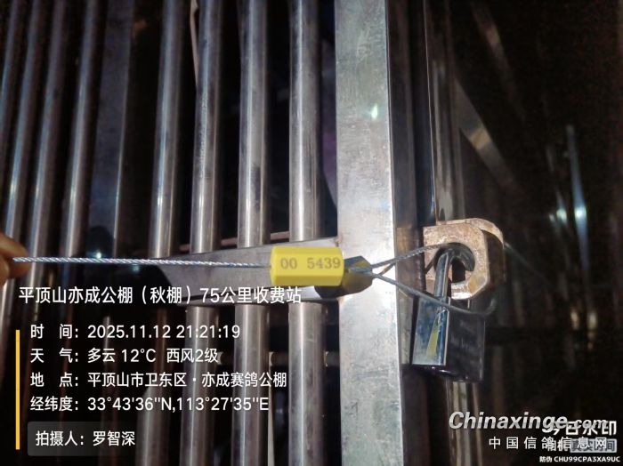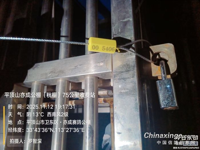 河南平顶山亦成秋棚25年收费站(第二车铅封)