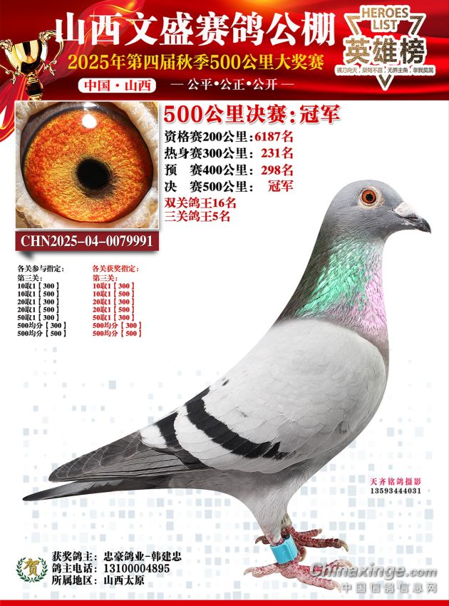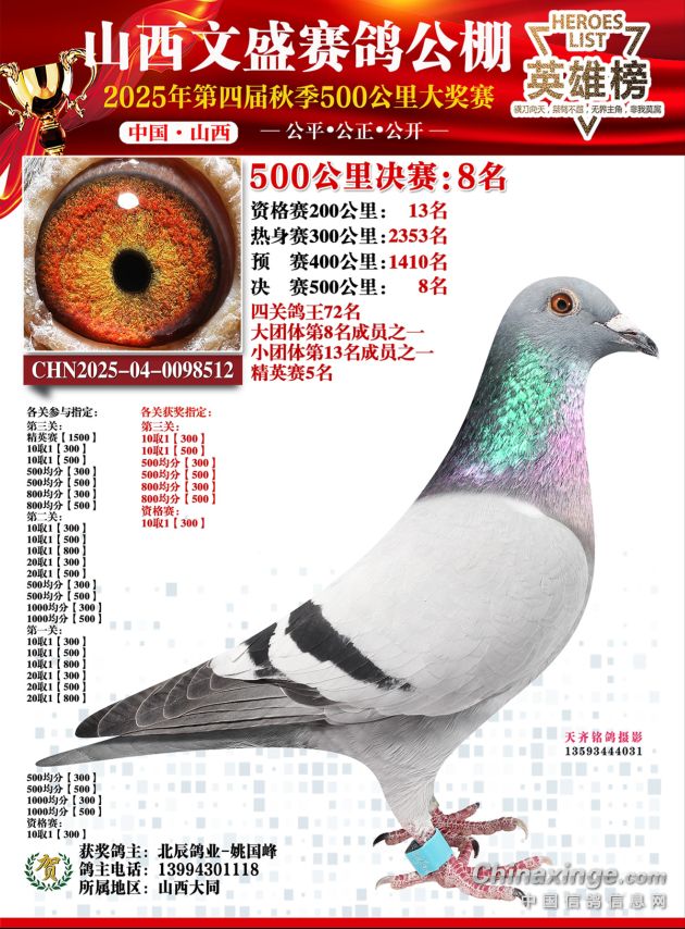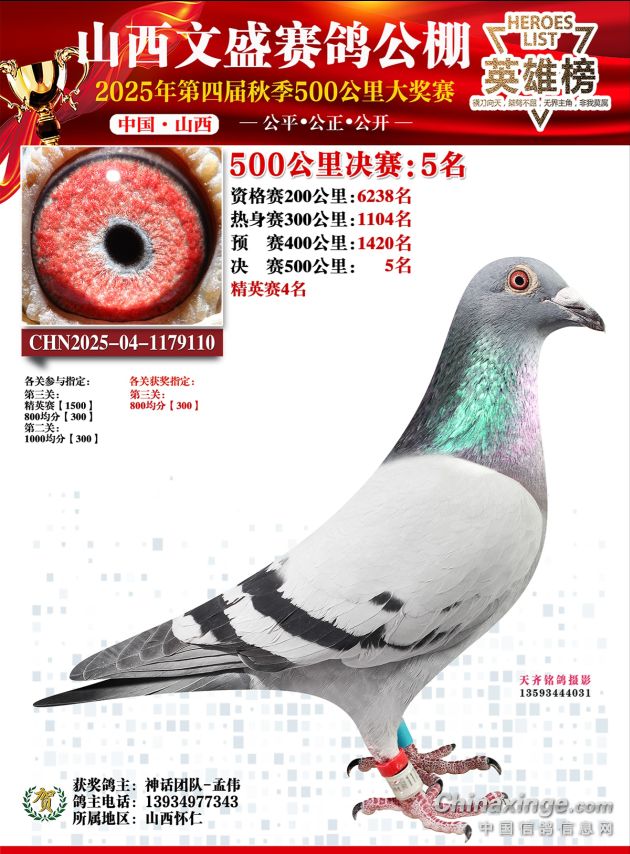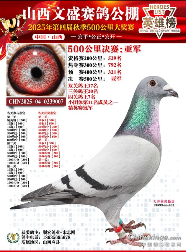 正因如此,这羽为我们立下赫赫战功的传奇赛鸽,如今将功成身退,正式入驻种鸽舍。这不是结束,而是一个崭新传奇的开始——它的优秀血脉,将继续为我们书写胜利的篇章!