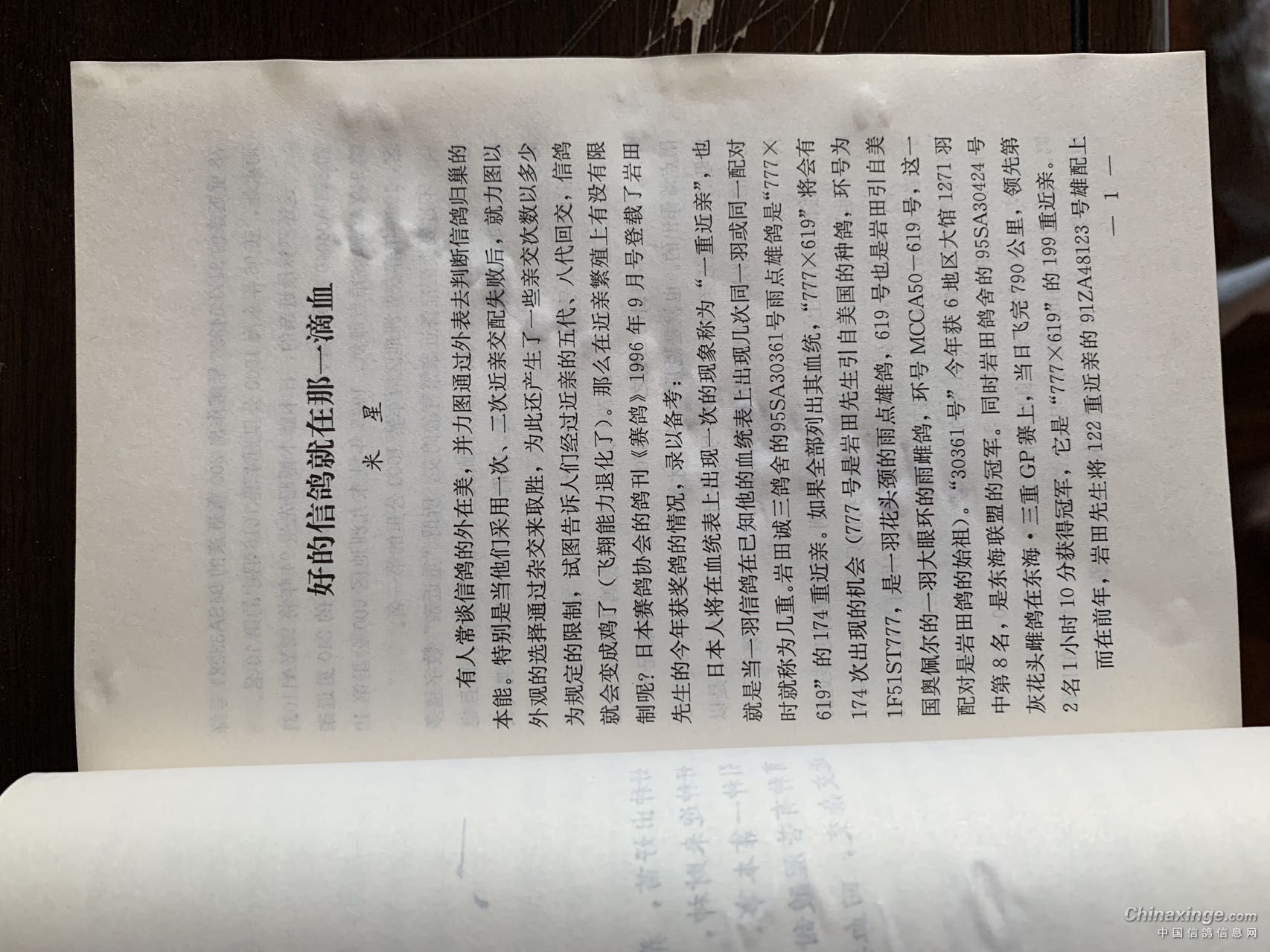 我在信鸽上是“血统论”者,不然詹森《老白眼》、赛轮斯《国家一号》、凡戴克《所向无敌》、考夫曼《小狄克》、宾尼史替文斯《气魄》、胡曼斯《哈利》谁看谁买?我也是在中国第一个提出好的信鸽靠的是《那一滴血》的爱好者 !(图1图2是《中华信鸽》100期文献汇编刊登的第一篇)