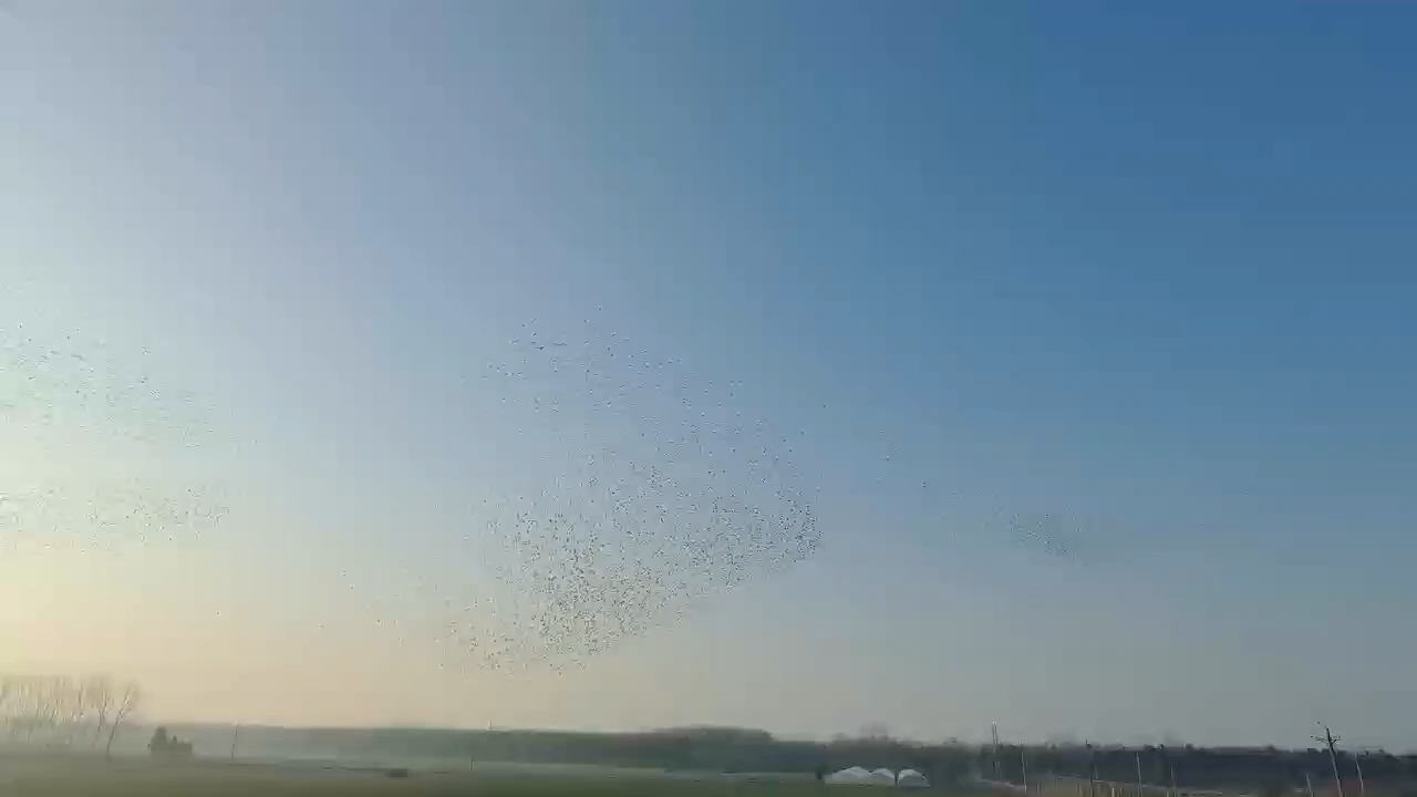 大家大年初五上午好!早晨8点上鸽舍,天气格外晴朗,鸽子放出去远走高飞,抓紧时间打扫卫生,打扫完卫生观察鸽子飞行状态,小鸽子从西南方向飞归,飞翔1个多小时才想起来拿掉训练旗,不到2分钟都纷纷落舍,高空两群大雁由南向北方人字型编队飞翔,预示着春天的到来。