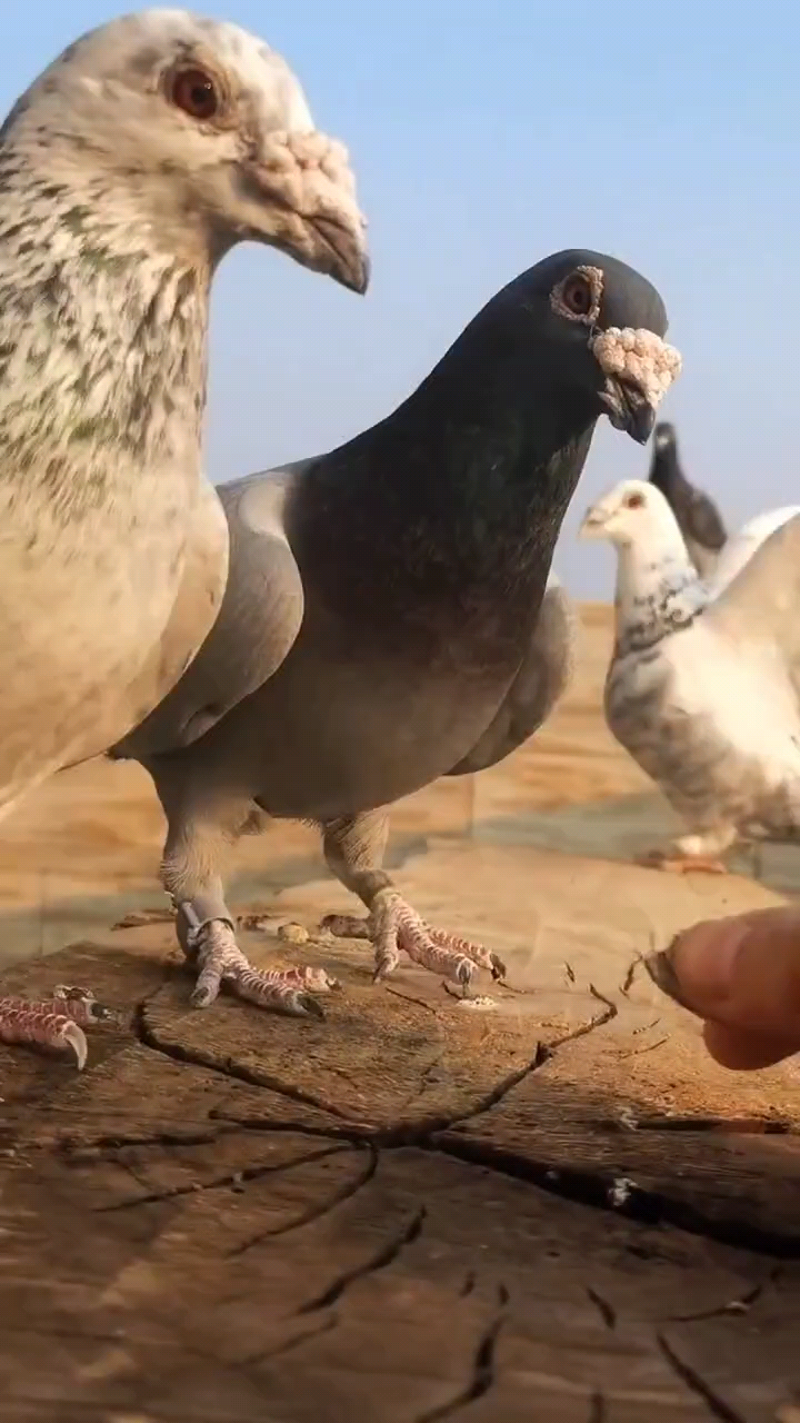 这几个幼鸽看到外面天空有天敌在飞的样子 都严肃起来!