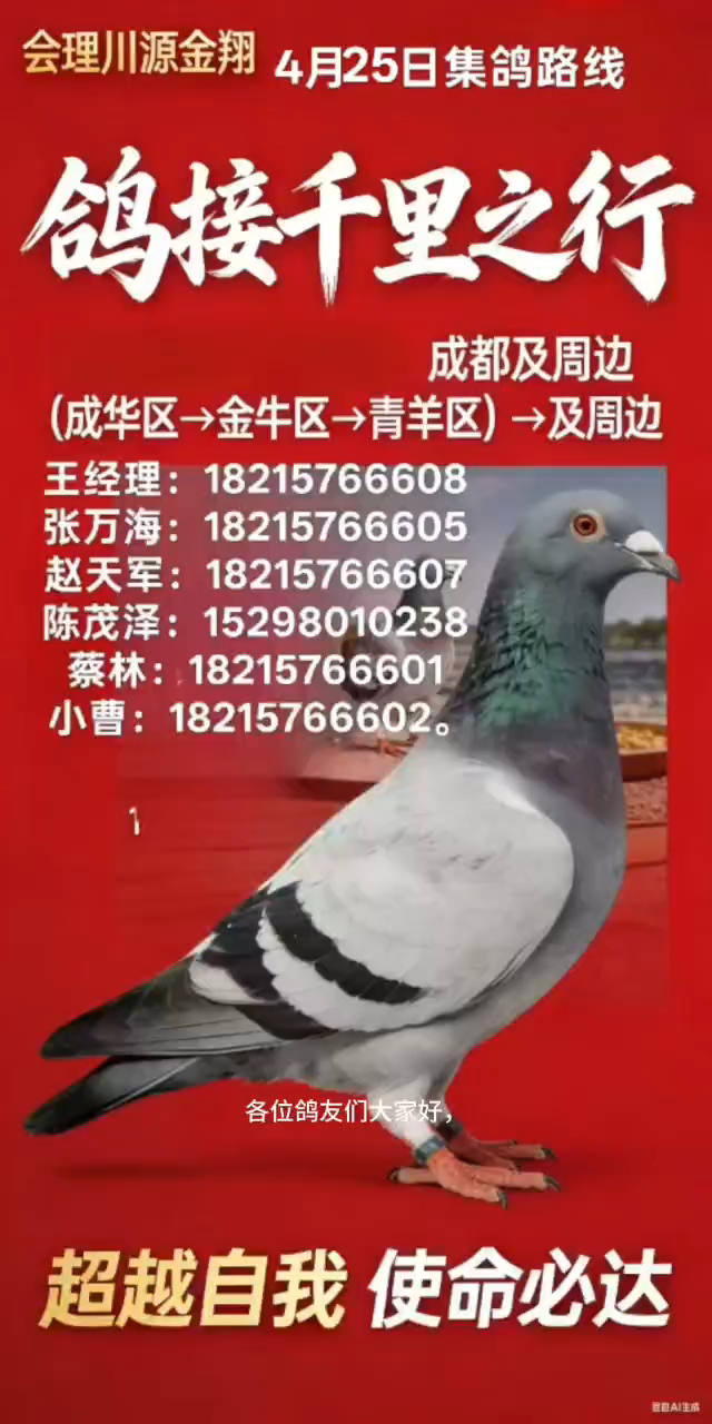 2026年4月24日,河南众盛赛鸽俱乐部,“众胜杯”四关鸽王信鸽挑战赛,第二关比赛