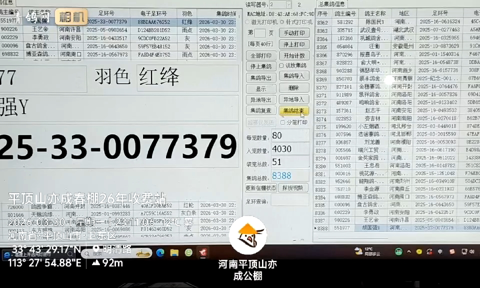 河南平顶山亦成春棚收费站集鸽结束封铅封(第一车1)