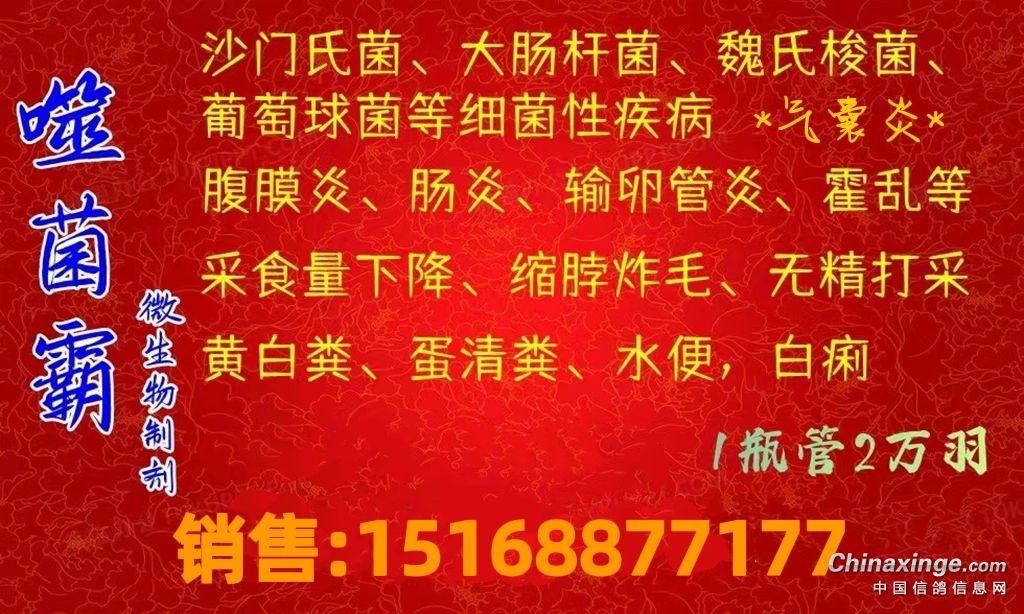 噬菌体真是好!种鸽配对不可少!每月用三天!