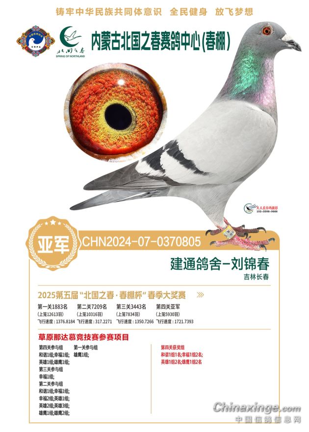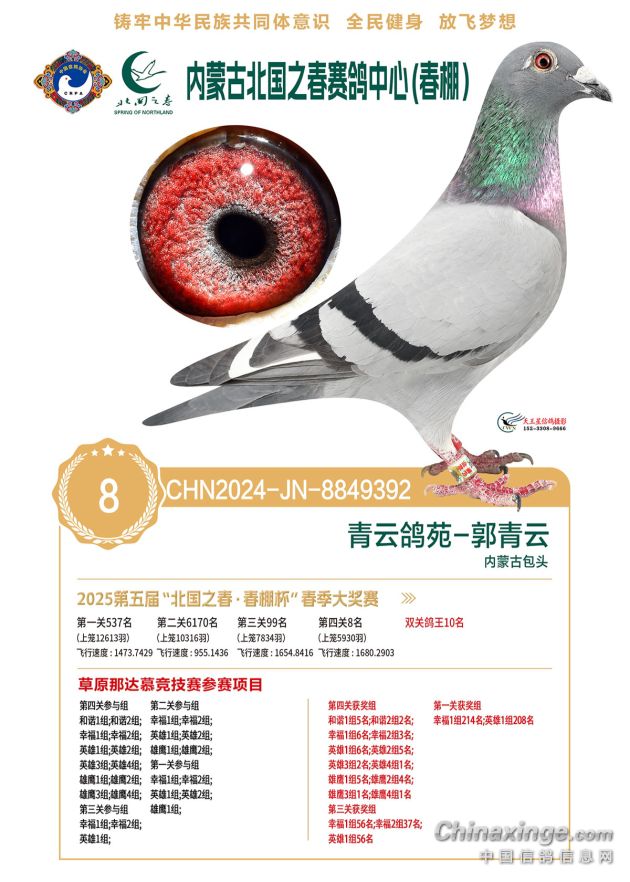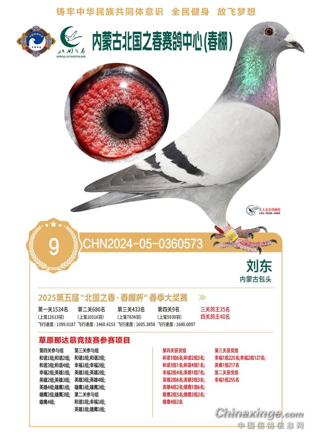 【第3517集】2025年内蒙古北国之春赛鸽中心(春棚)决赛前九位欣赏。