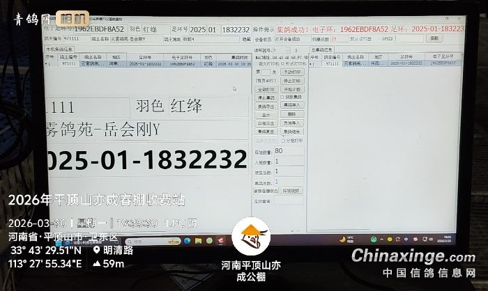 河南平顶山亦成春棚集鸽第一羽