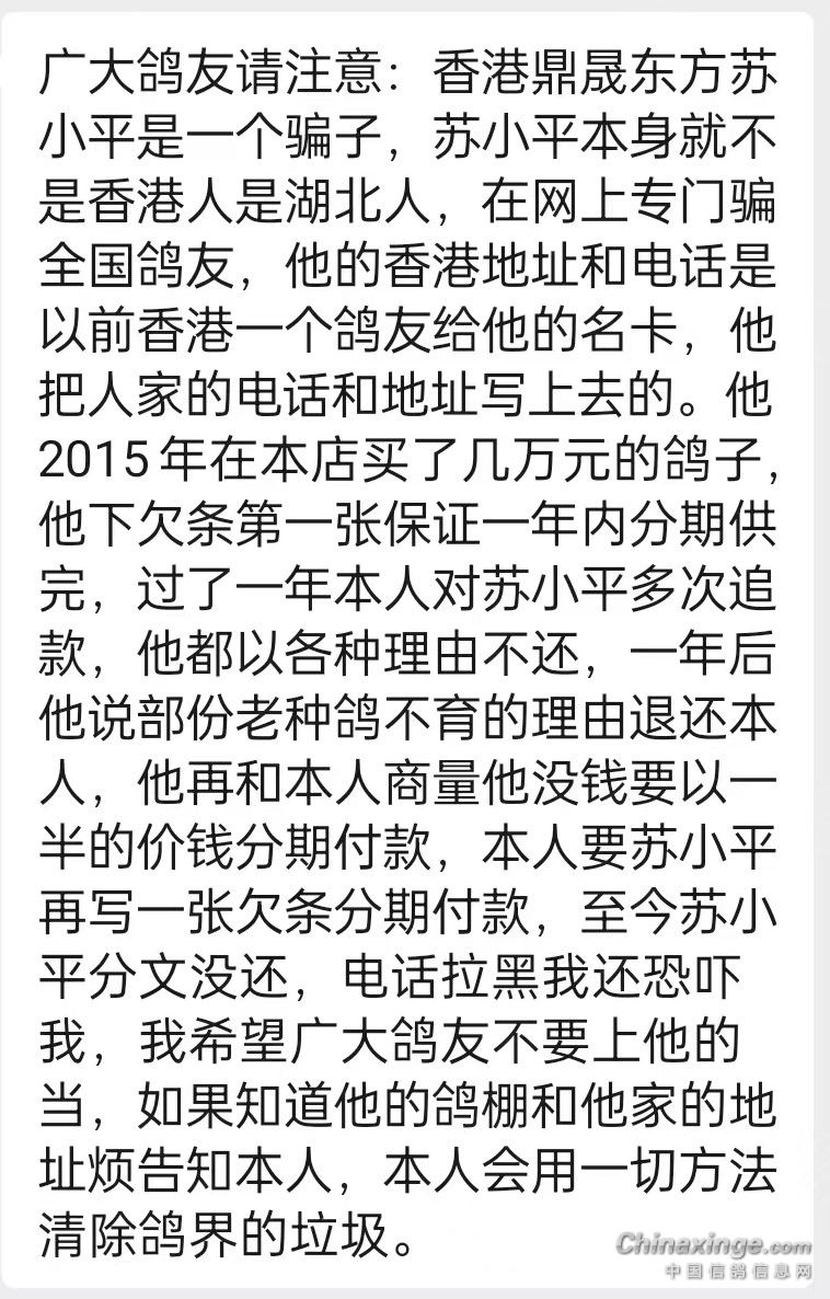 鸽友们请看图,一个湖北人假冒香…