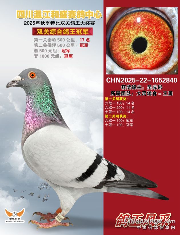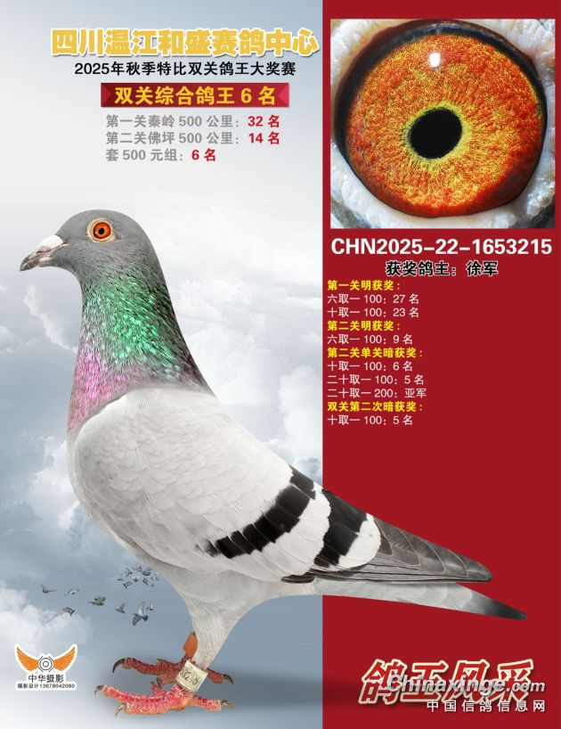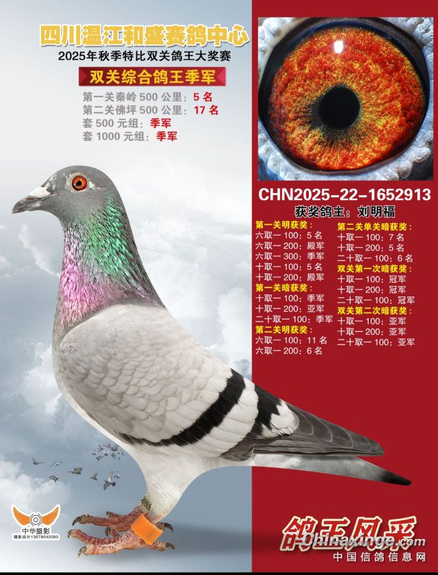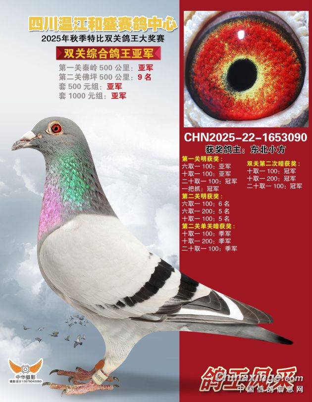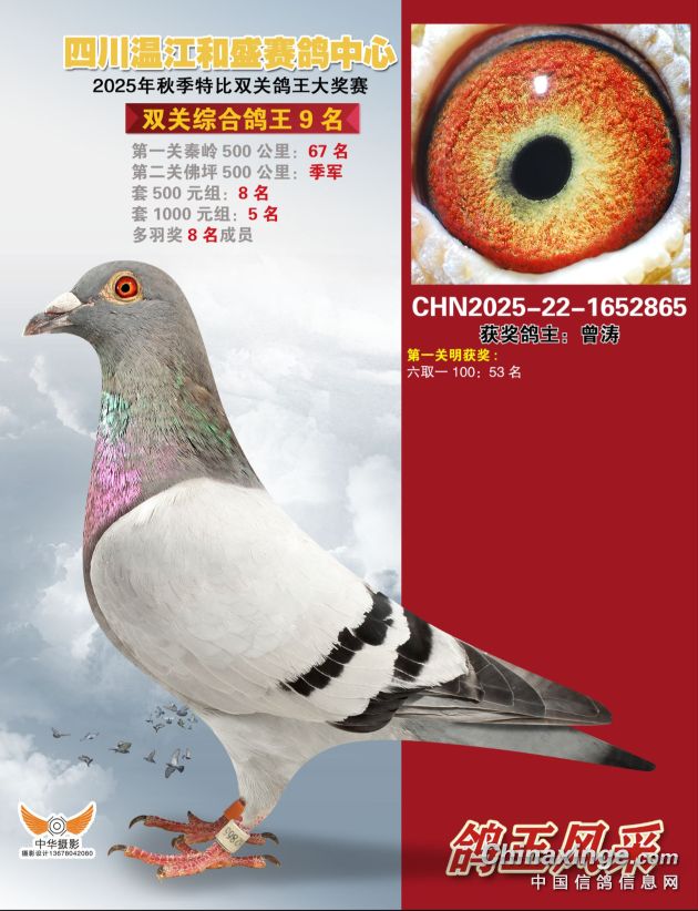 四川温江和盛赛鸽中心2025年秋季特比双关鸽王大奖赛前九位鸽眼欣赏。