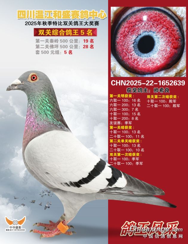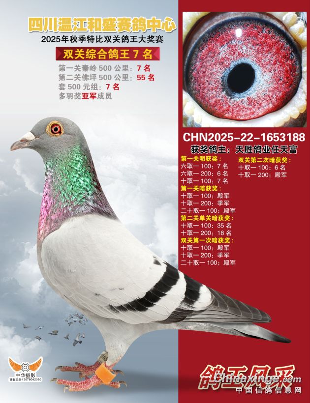 四川温江和盛赛鸽中心2025年秋季特比双关鸽王大奖赛前九位欣赏。