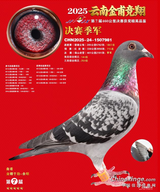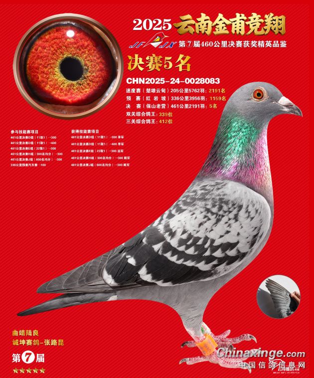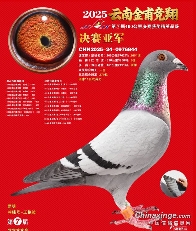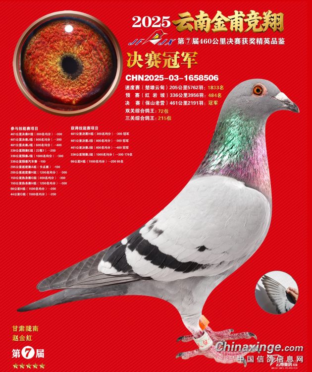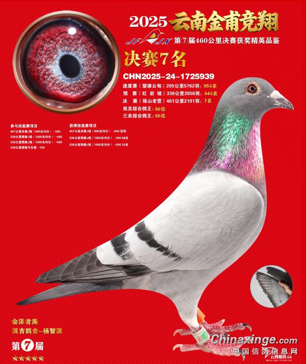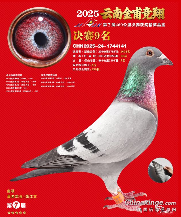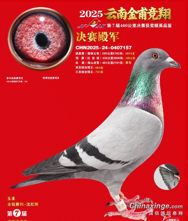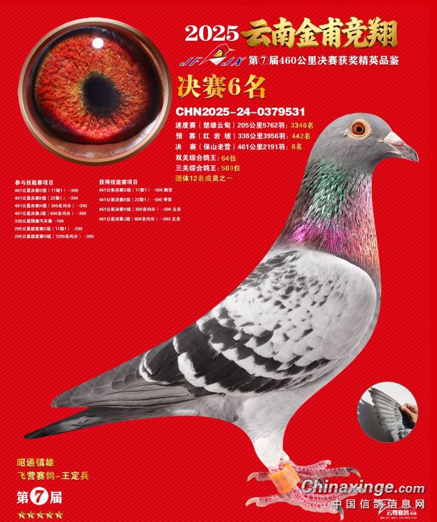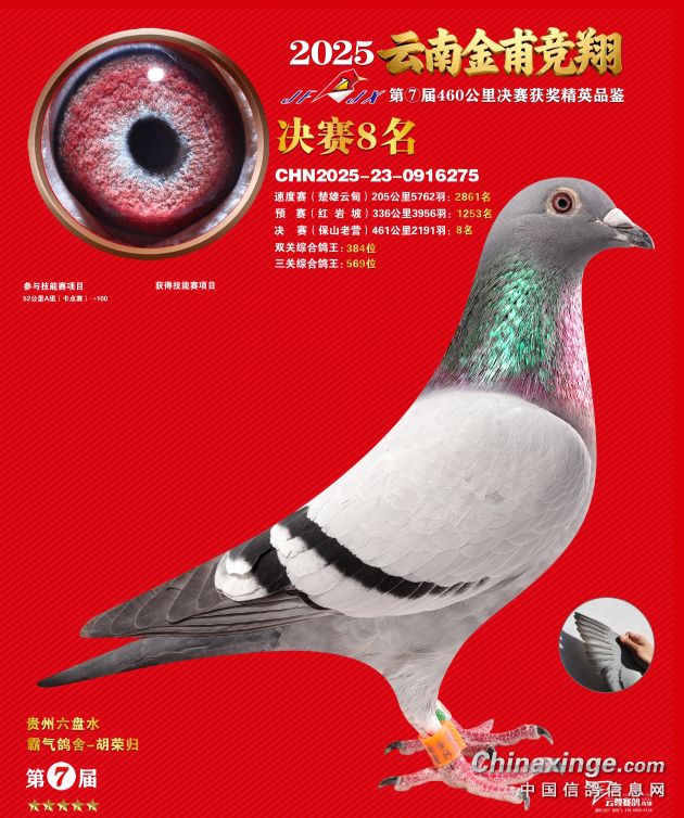云南金甫竞翔第七届460公里决赛前九位鸽眼欣赏。
