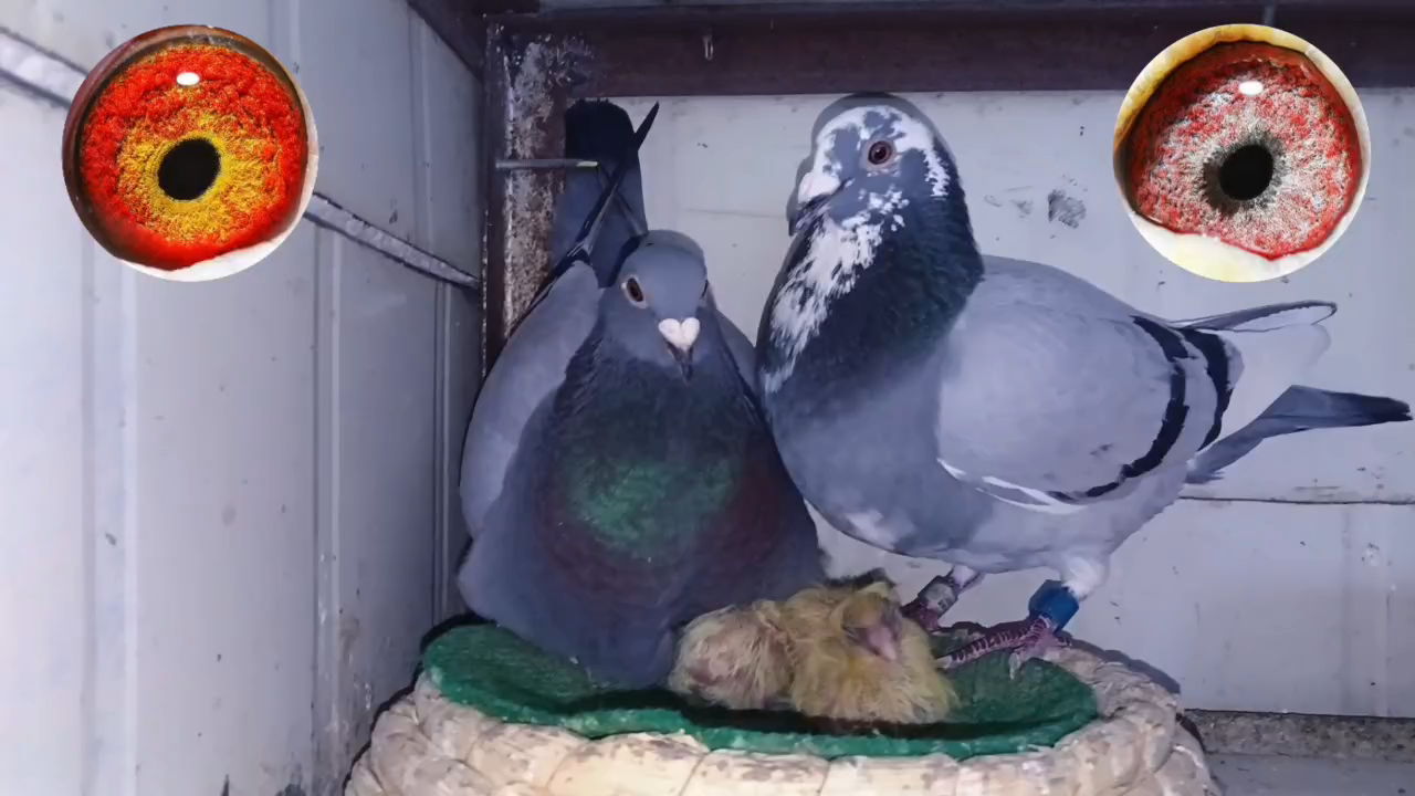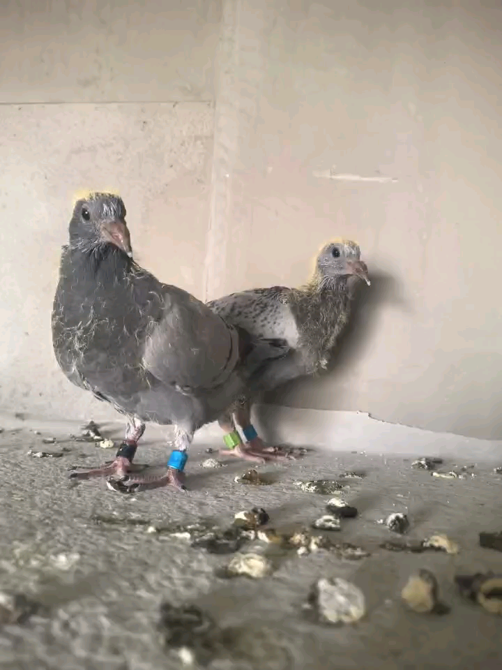 这两羽有着浓浓的血缘关系,属于自由配对,是去年秋季四关鸽王获奖鸽,又是参加今年春季比赛的鸽子。第一窝孵假蛋做了保姆鸽,第二窝前天4月20号出壳,过三两天又要去比赛。这咋整?