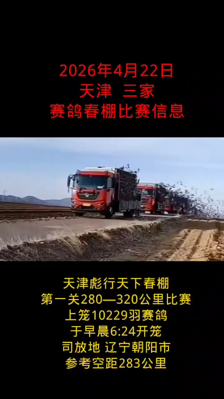 2026年4月22日天津三家赛鸽春棚比赛信息