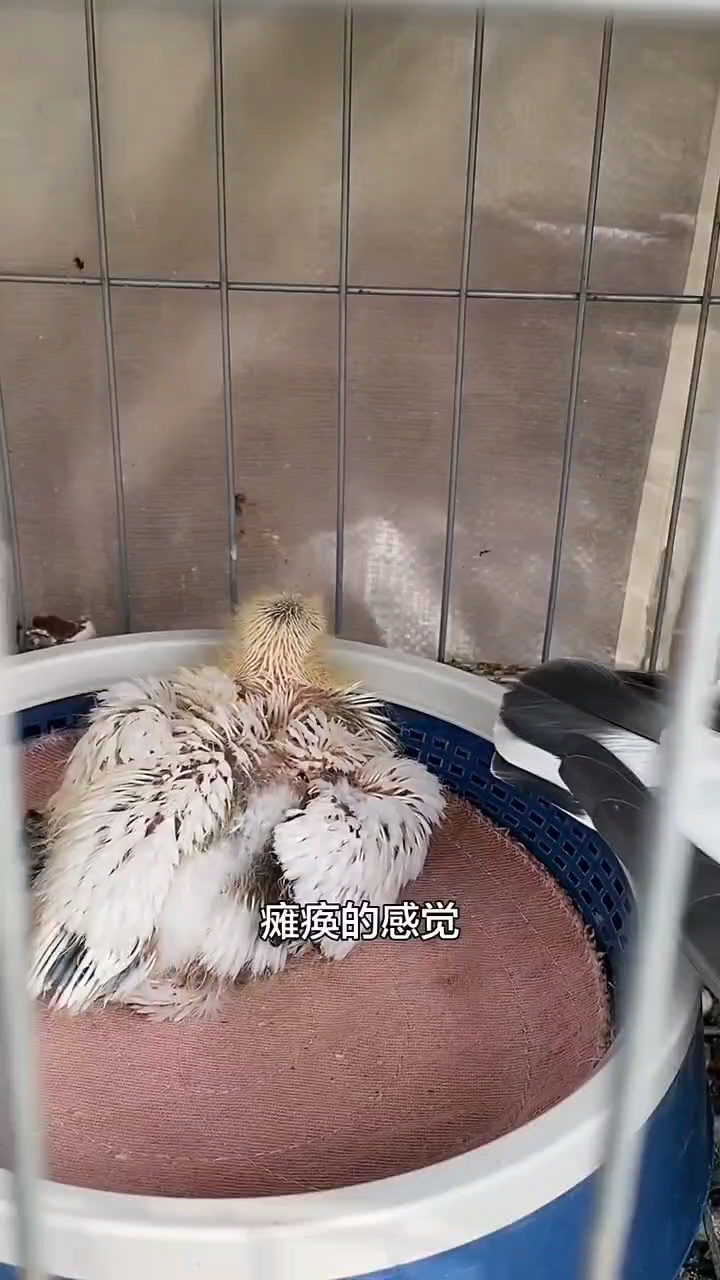幼鸽软绵绵的,昨天不知是不是没吃到东西,今早我看整个嗉囊皱巴巴的,但现在吃饱了。头有点抬不起来阿!