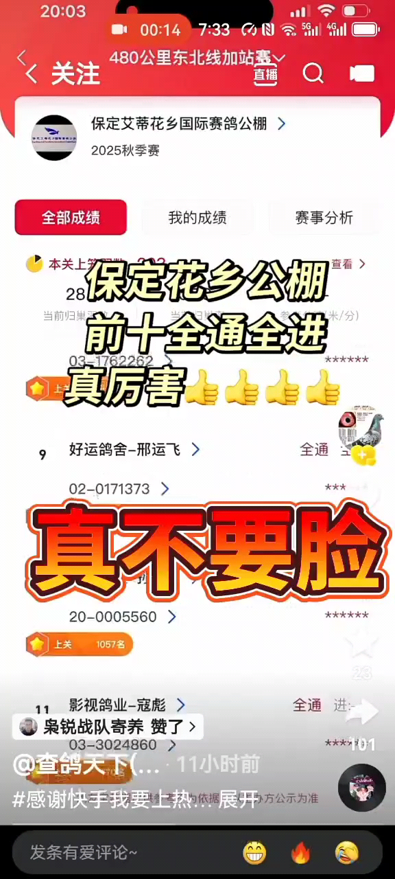 保定花香国际赛鸽公棚2025年秋季第六届500公里大奖赛决赛前九位欣赏。