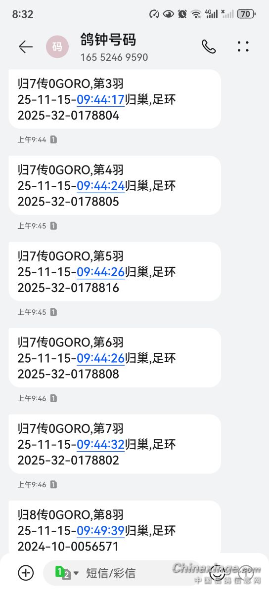 明天480公里第二关集鸽,早上训80公里都76分钟集体回来了,开笼时候有薄雾,太阳也没有太大劲,还以为要80分钟左右才能见鸽,没想到车才停好短信就到了。感觉0178802要往前冲了。撞伤的0178804今天第一个进棚。02第二关肯定比0178810快。带了5羽小鸽子,丢了200名和718名出的倒了3根条的一只花,还有一只没有去查谁出的小鸽子,小鸽子都直接干80公里,明显比特比环慢很多,都单枪匹马回来的。一只是大铭鸽出的,一只是二名母雄出的,还有一只没有找到记录。
