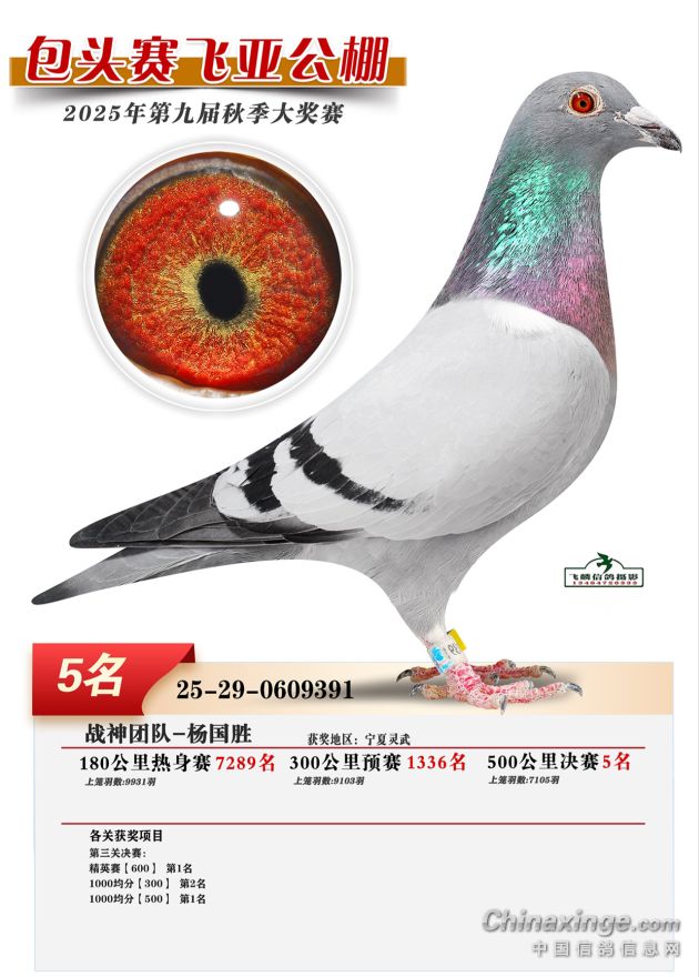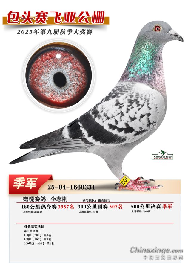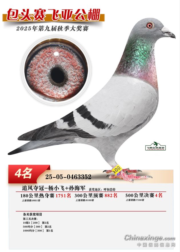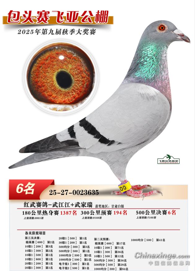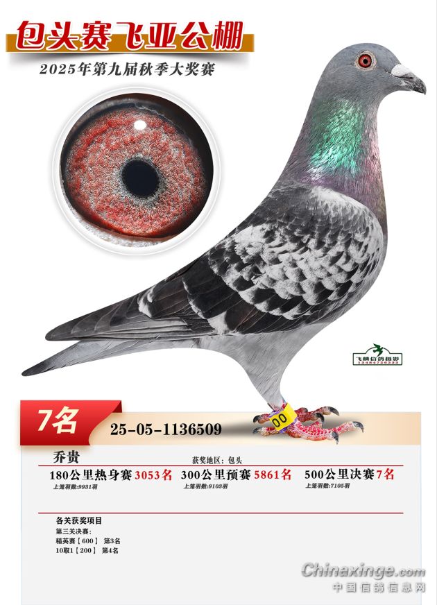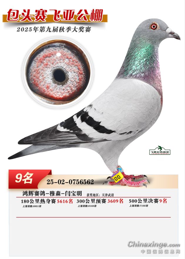 包头赛飞亚公棚2025年秋季大奖赛决赛前九位鸽眼欣赏。