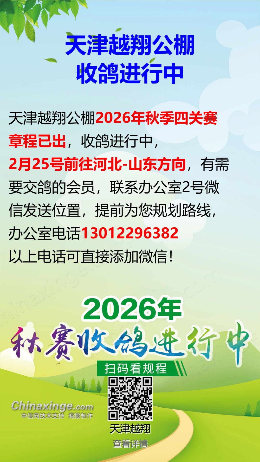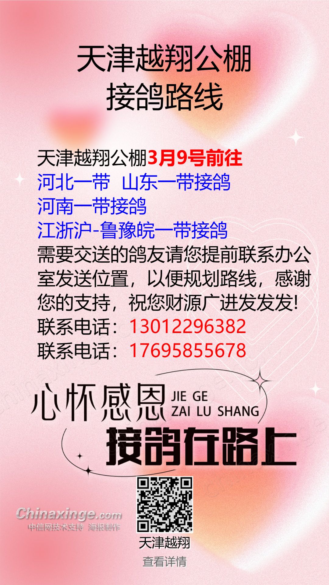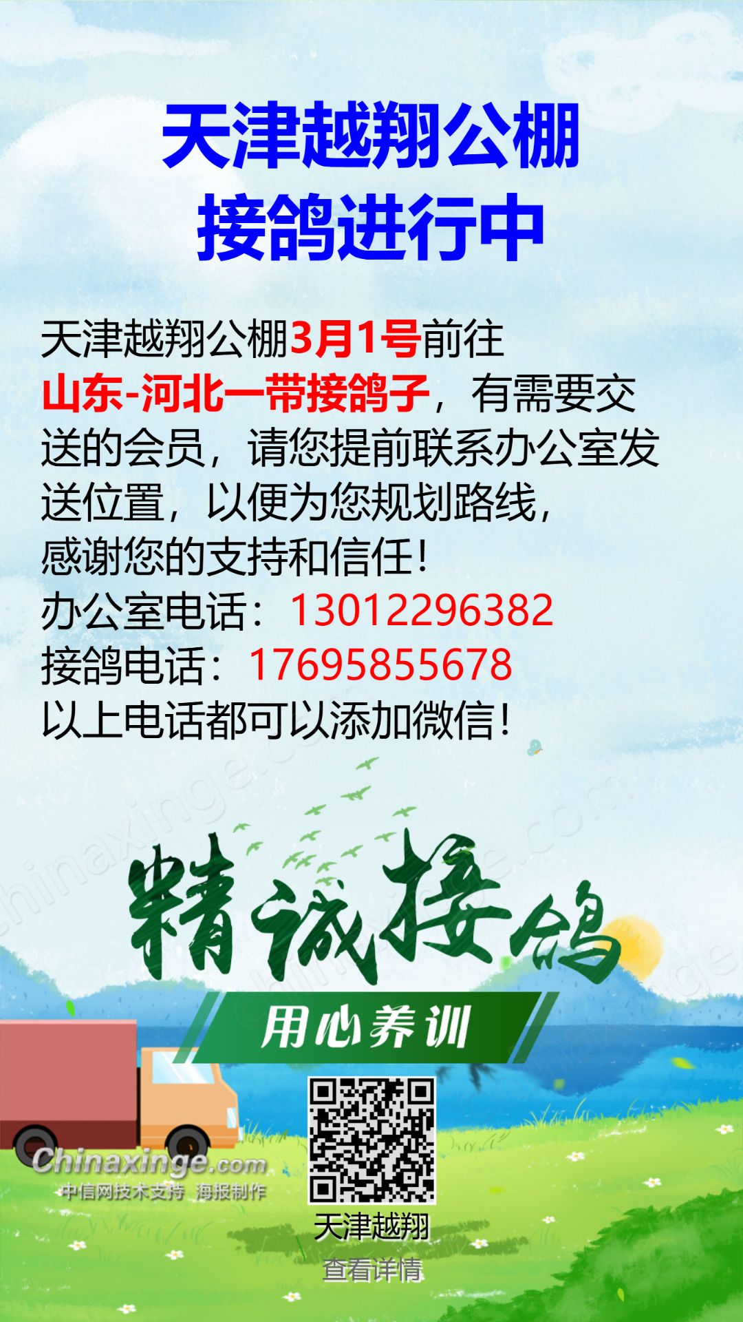 天津越翔公棚前往河北、山东一带接鸽需要交鸽联系办公室