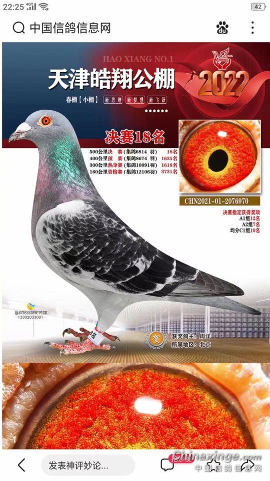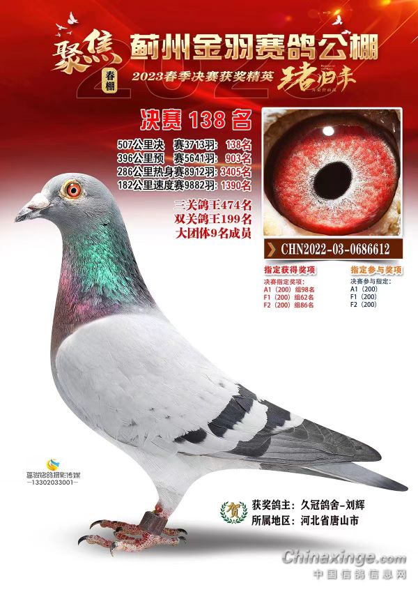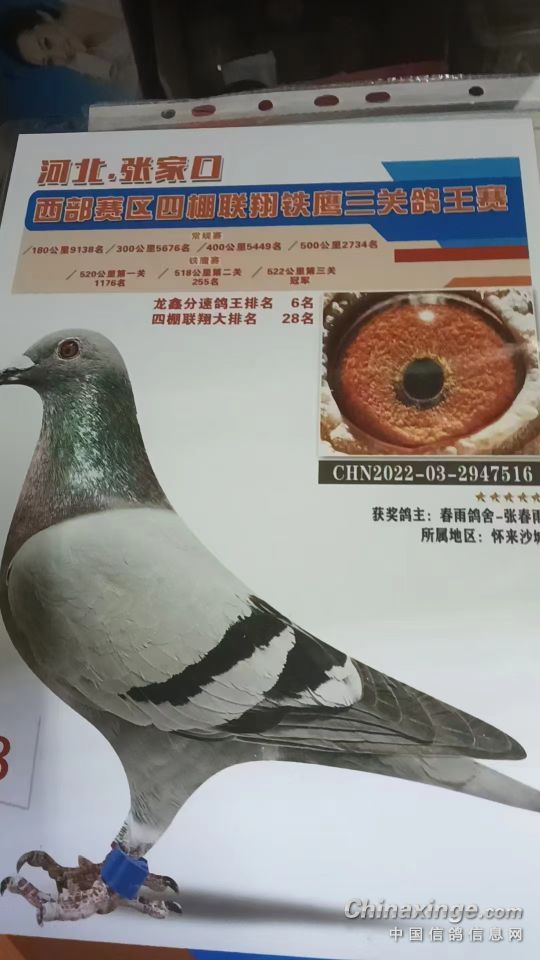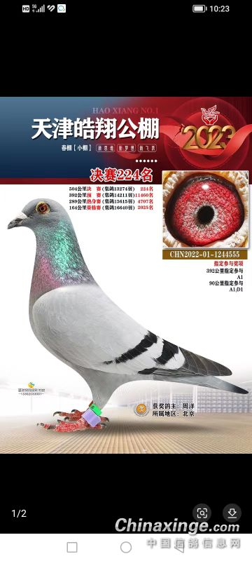 2024年预订幼鸽,雌鸽2023年出的天津小宇航加站双关综合64名三关综合18名四关综合17名,同窝雌鸽做出2023年春季久盟公棚预赛90名决赛246名,喜欢的联系……就预订一窝。