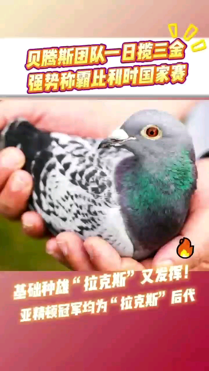 贝腾斯团队一日揽三金!强势称霸比利时国家赛。其中,亚精顿III两羽冠军鸽同出自基础种雄“拉克斯”血脉,传承不辍!一起来欣赏三羽冠军鸽。