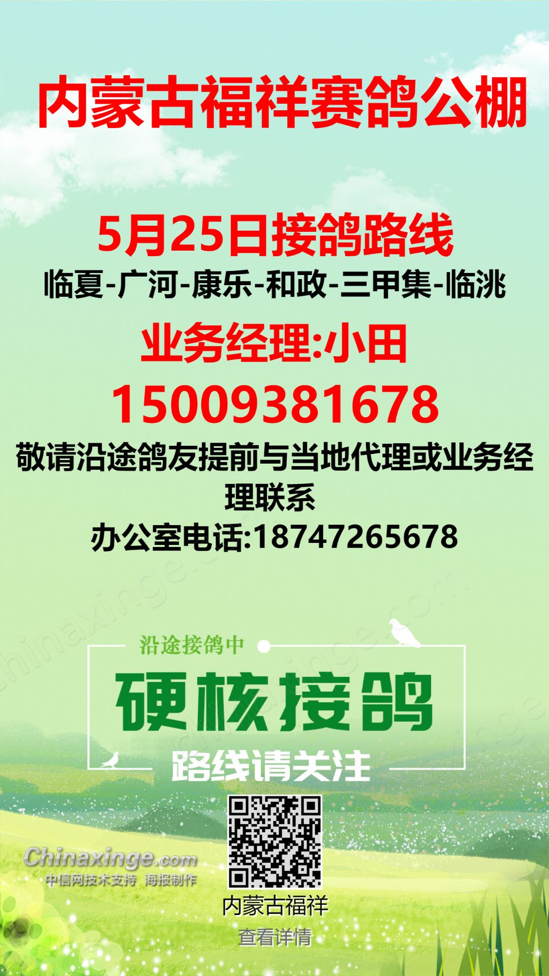 内蒙古福祥赛鸽公棚5月25日接鸽路线