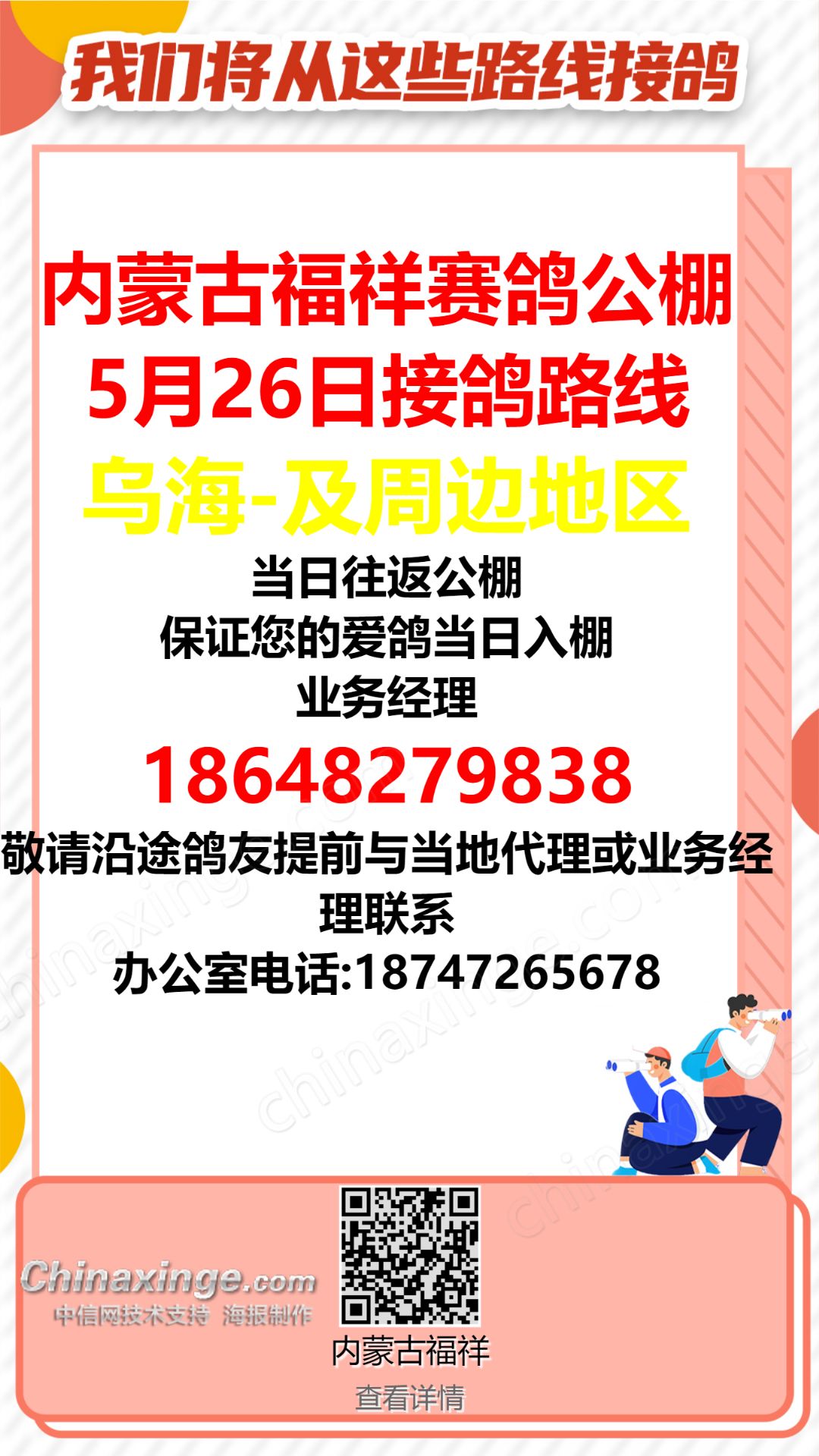 内蒙古福祥赛鸽公棚5月26日接鸽路线
