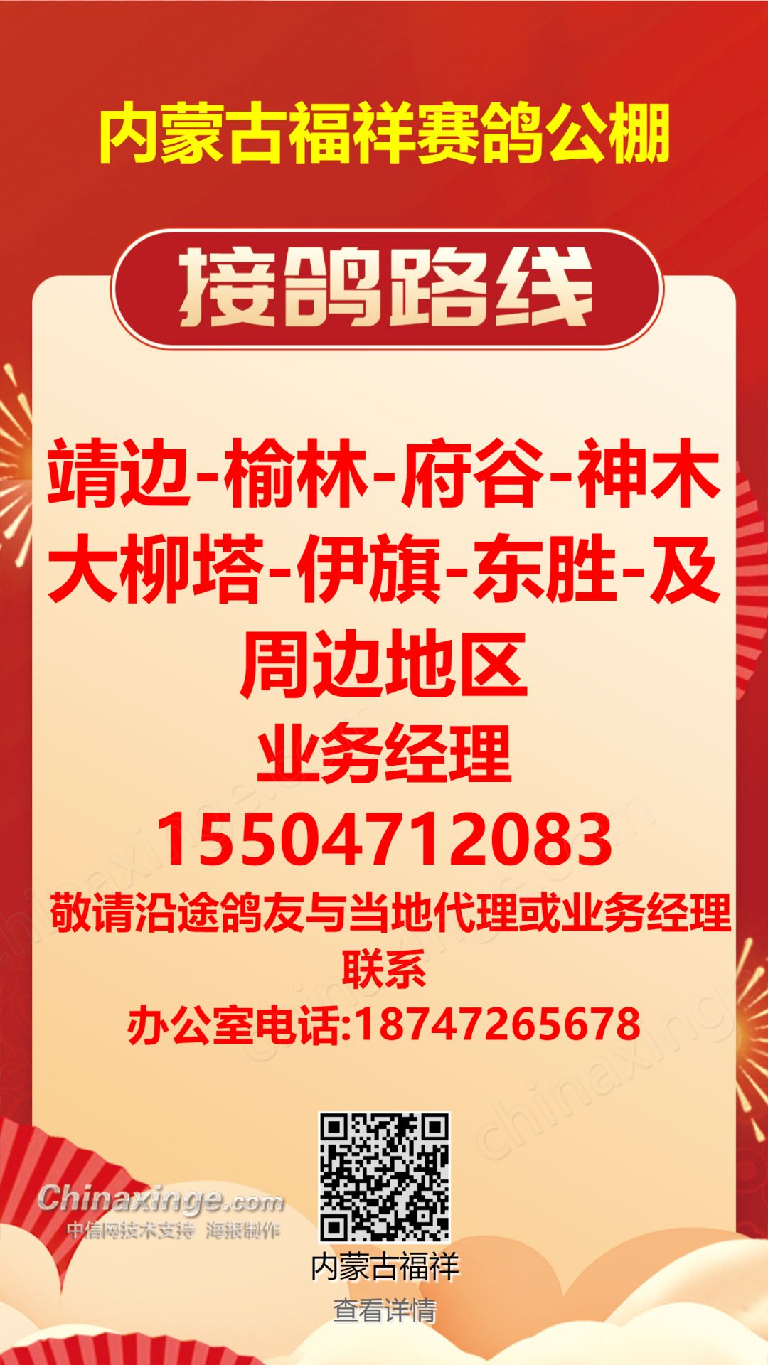 内蒙古福祥赛鸽公棚接鸽路线:靖边,榆林,府谷,神木,大柳塔,