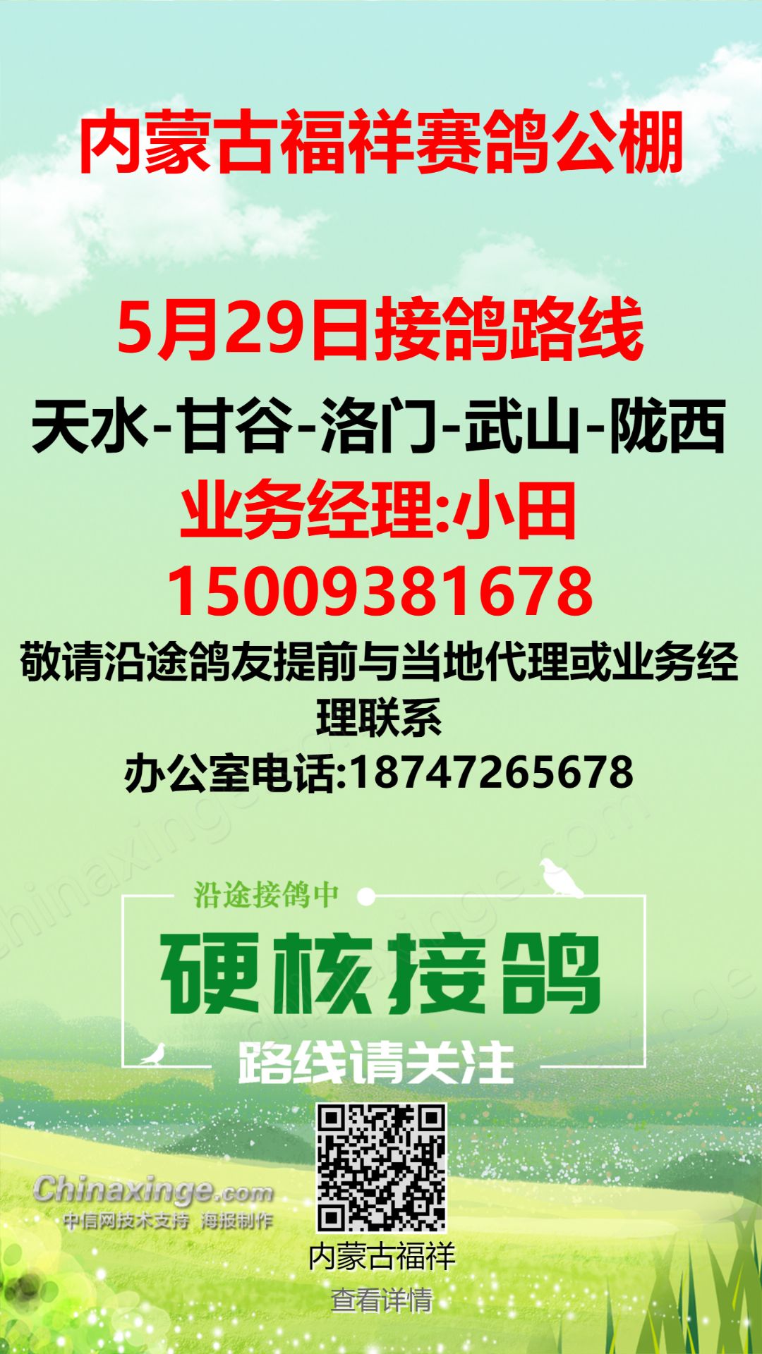 内蒙古福祥赛鸽公棚5月29日接鸽路线