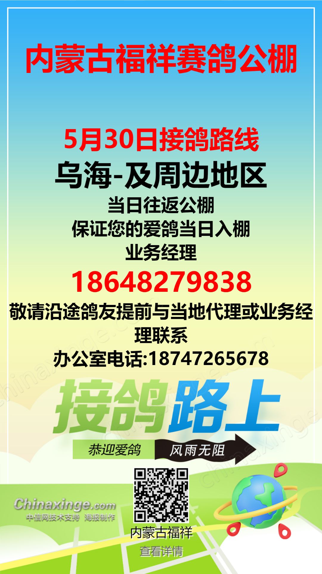 内蒙古福祥赛鸽公棚5月30日接鸽路线