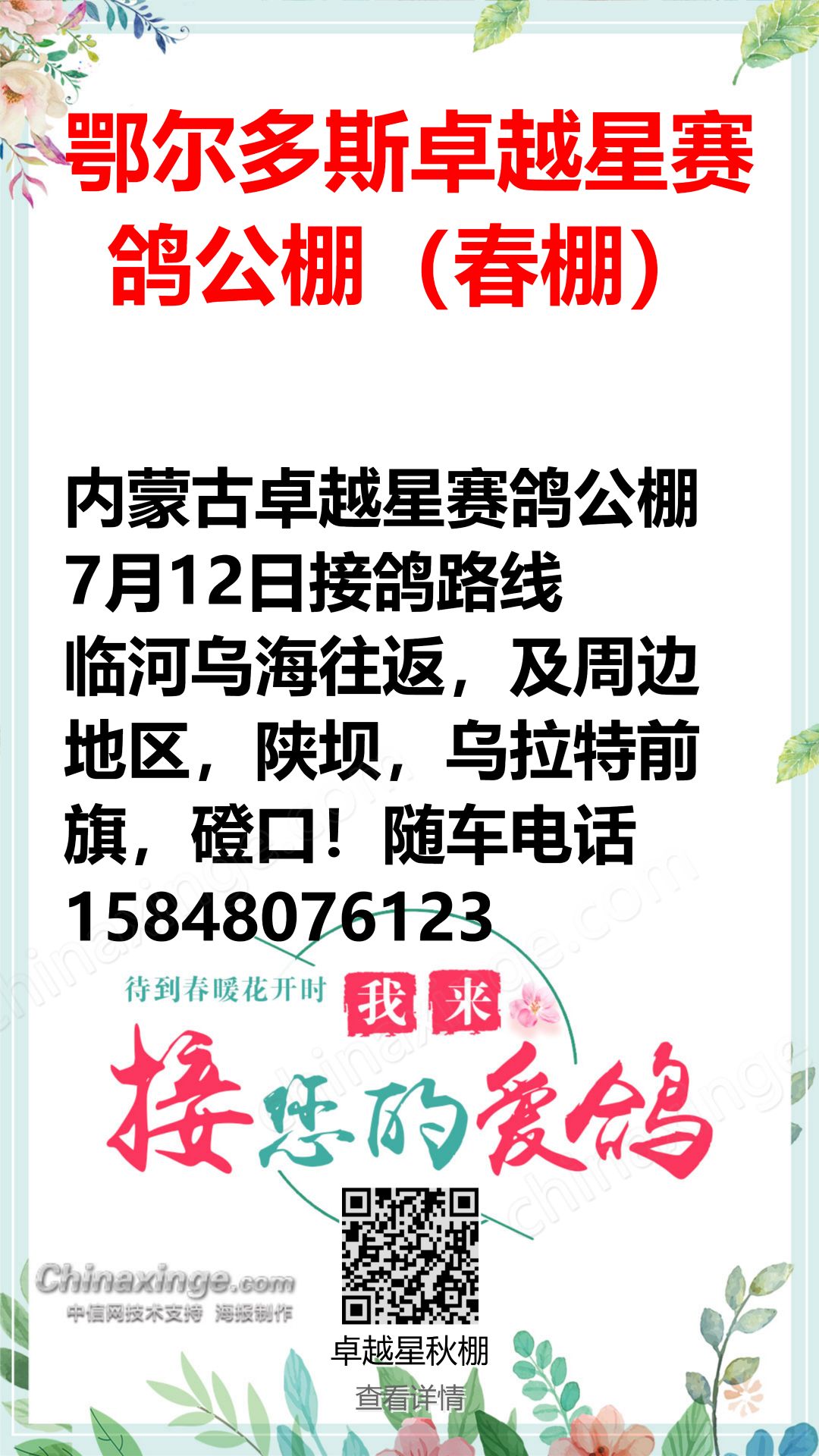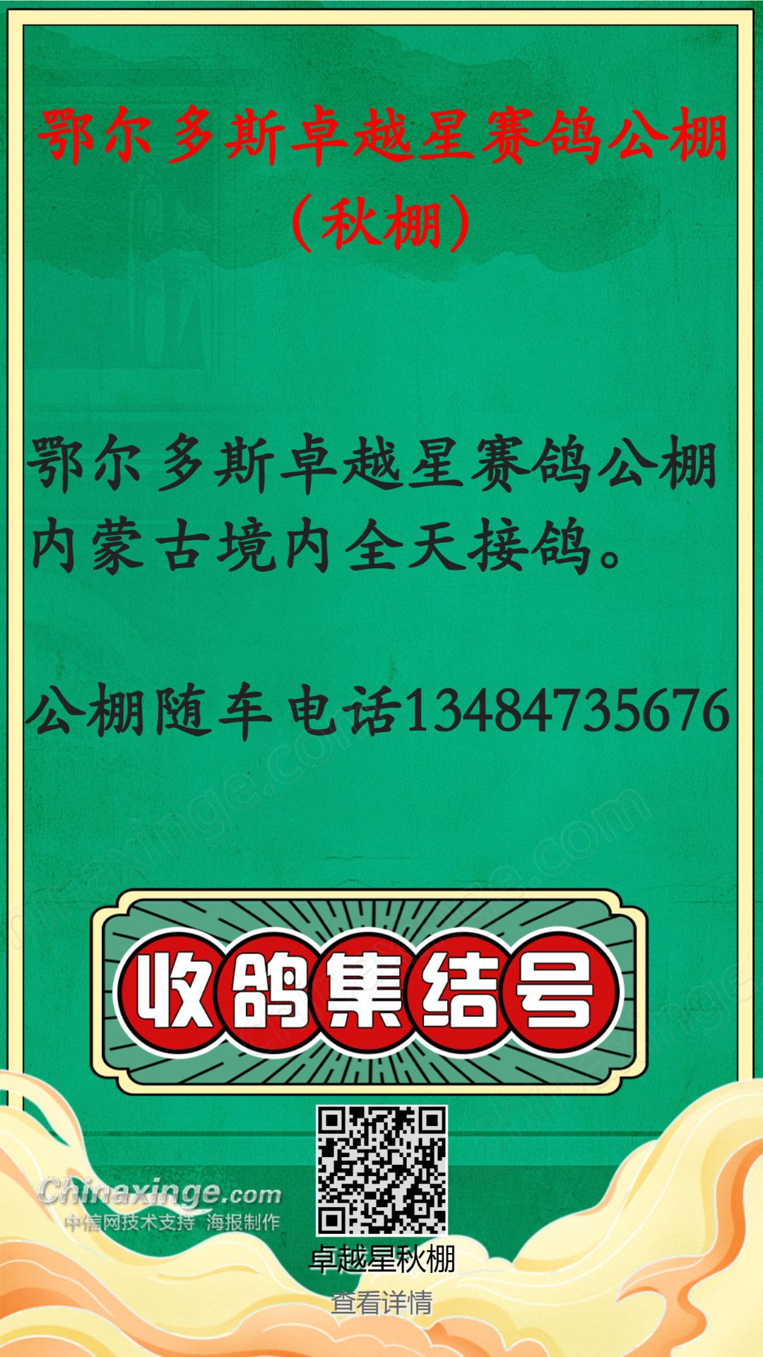 鄂尔多斯卓越星赛鸽公棚开业盛典邀您共襄盛举!