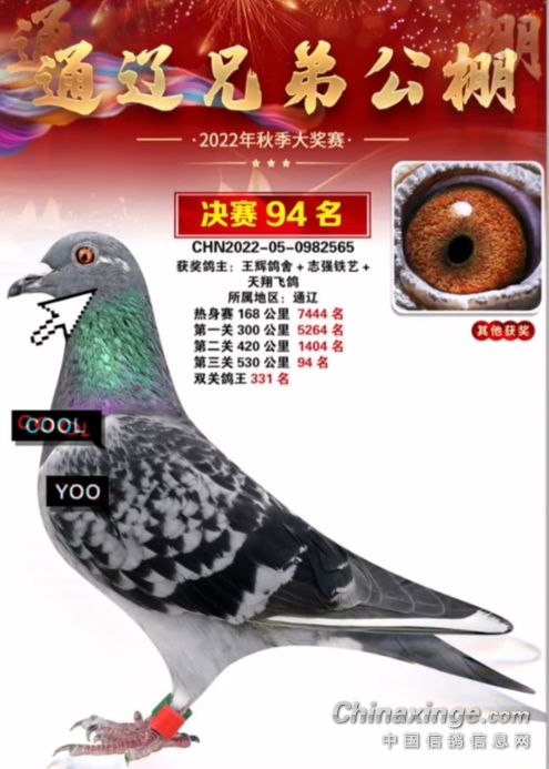 此鸽子自身成绩优秀做育出无数公棚进奖鸽在此其中还做育出一位公棚亚军 #职业赛鸽