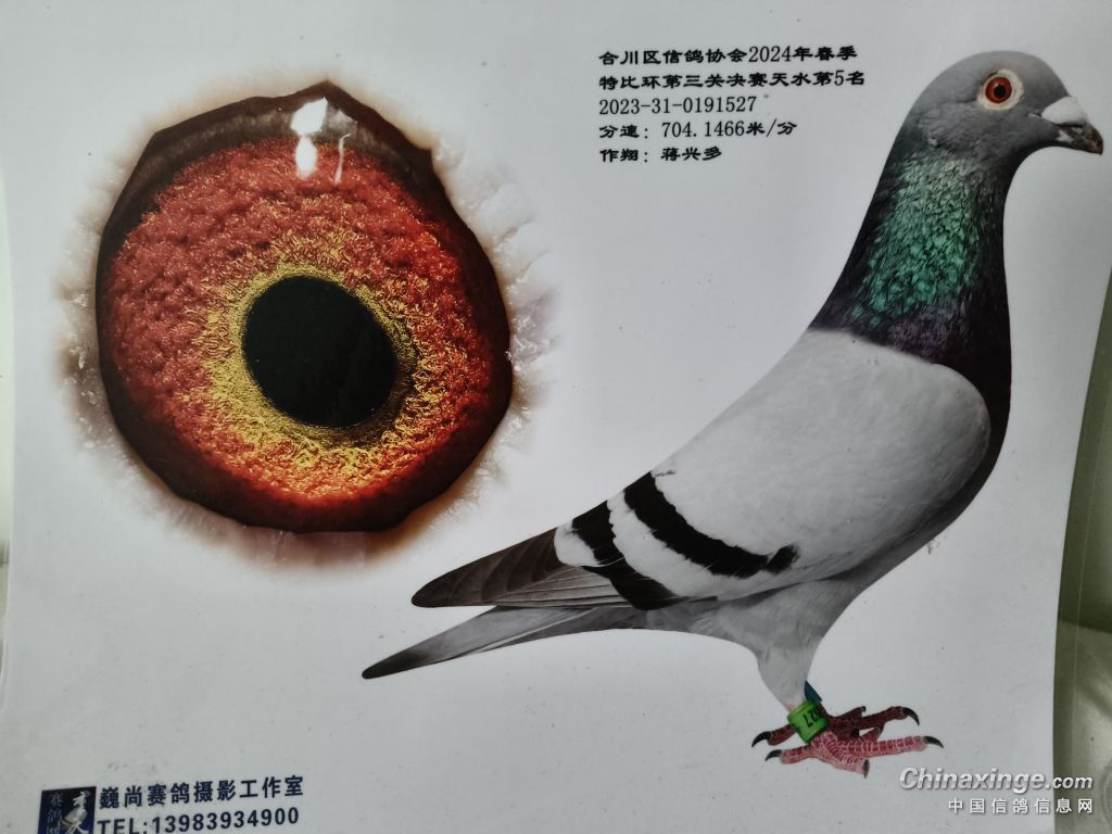 致赛鸽 在湛蓝如洗的天际, 你宛如灵动的音符,自由地飘逸。 合川区的风,轻拂你的羽翼, 天水的赛场,是你勇敢的征途之地。 那如火焰般炽热的眼眸, 藏着无畏的坚定与睿智的光流。 2024 年的春赛,是命运的绣球, 你用矫健身姿,把挑战承受。 704.1466 米每分的速度,如此迅猛, 像一道银灰的闪电,划破长空。 脚环是荣誉的勋章,熠熠闪动, “0191527”,铭记着你的英勇。 你在云端翱翔,身姿矫健优雅, 穿越风雨,向着归巢的方向出发。 主人的期许,在你心中驻扎, 你是他梦想里,最璀璨的星华。 鸽群中的勇士,天空的骄子, 你的坚韧,奏响胜利的史诗。 每一次振翅,都是生命的宣誓, 赛鸽啊,你是荣耀的极致诠释!
