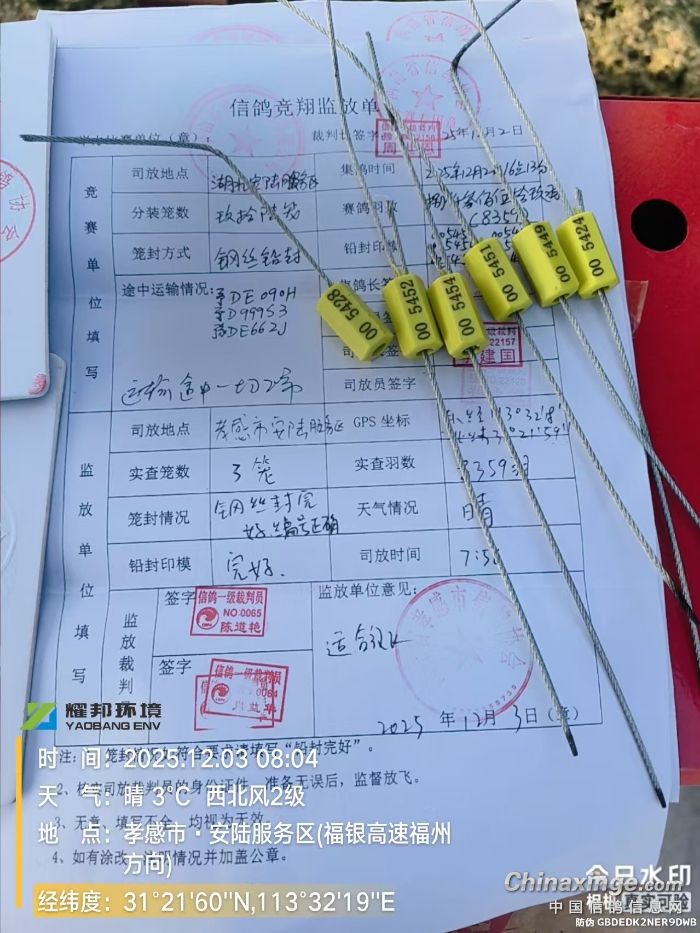 河南平顶山亦成秋棚第一关集鸽结束,裁判销毁暗记章
