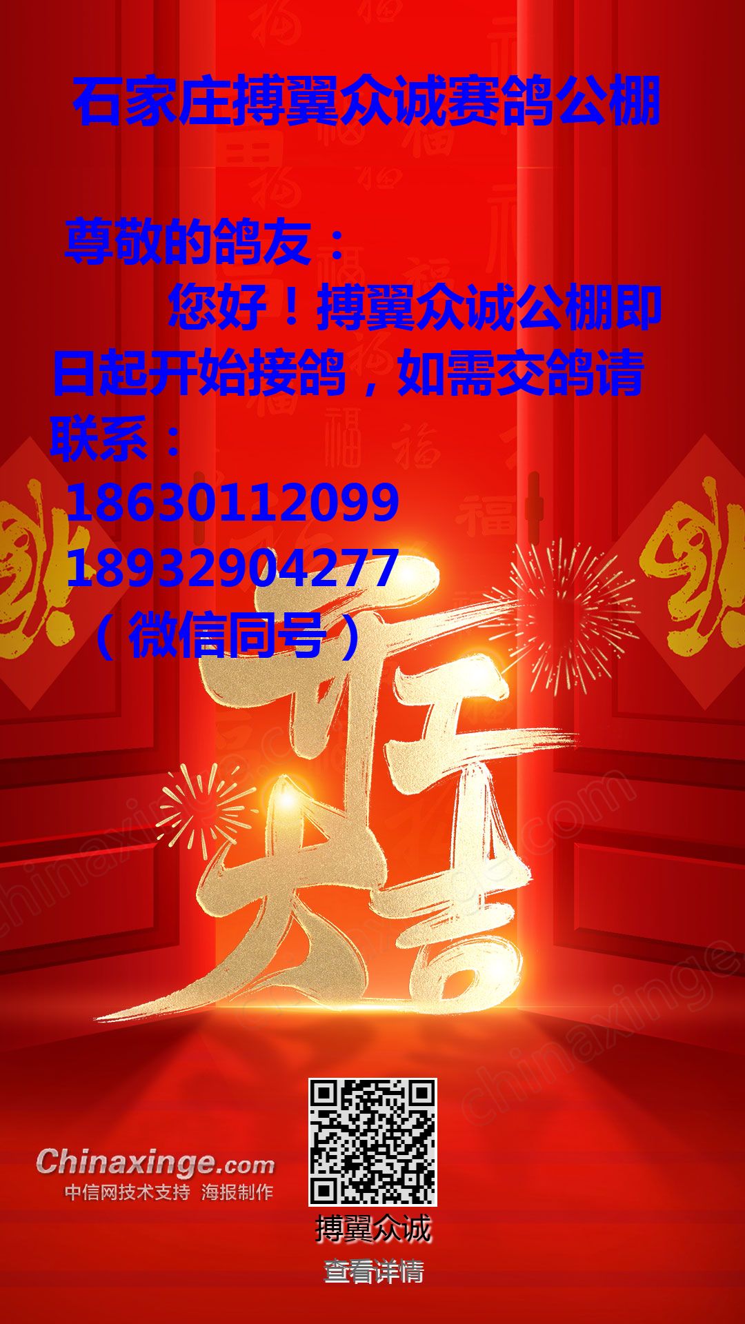 石家庄搏翼众诚公棚-祝全国鸽友国庆节快乐