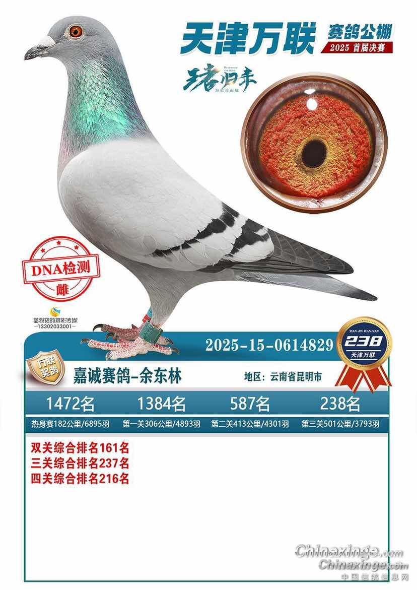 是金子总会发光,热烈祝贺山东齐河县好大哥用我去年指定配对林波尔配凡龙家族子代今天在山东风帆国际公棚决赛喜获533名(1401米/分)好成绩吸金3个W,赛绩说明一切,大哥去年林波尔报喜今年继续报喜,感谢大哥红包,预祝明年取得更好赛绩!
